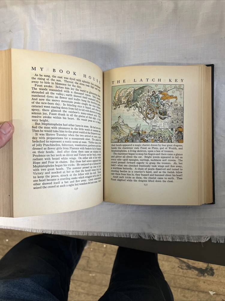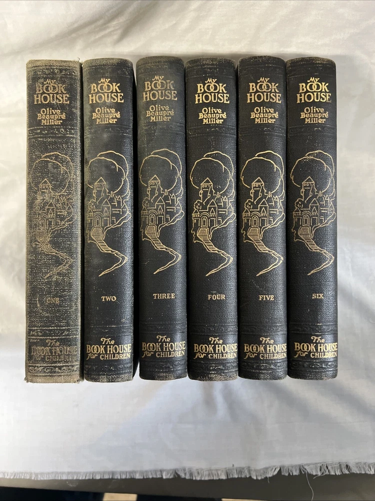 Wonderful complete set of 1st edition My Book House Volumes 1-6 by Olive Beaupre Miller. Published 1920-1921 by The Book House for Children of Chicago, Illinois. The books are in very good antique condition considering the age and the fact that they are children's books, with expected wear to the covers, edges, and spines. The conditions get better as the series goes on with less losses, pages do show foxing/discoloration, page tears from age and turning. Please see all photos. The collection and additional condition includes: (1) In The Nursery . 1920 Break to inner binding, 5-12 are loose, 95, 113, 205 torn and tape, missing pages 13-16. other minor wear (2) Up One Pair of Stairs . 1920, 1925 minor looseness on the outside edge of back cover (3) Through Fairy Halls . 1920 tear on first page (4) The Treasure Chest . 1920 (5) The Tower Window . 1921 (6) The Latch Key. 1921. 1925 See pictures for complete condition details. This item comes from a smokefree home, I accept paypal or you can pay when you pick up an item, any other payment questions please email me. I will combine/discount shipping charges on multiple purchases to help save you money. if you buy multiple items, please wait for me to send you an invoice with the discounted shipping on it. Shipping to Hawaii, Alaska, Puerto Rico, and OTHER COUNTRIES is extra, please email me for international shipping rates, -----------------Insurance is an additional charge, please ask for insurance if you would like it. Insurance needs to be purchased by the customer, in order to have any coverage for shipments lost or damaged by USPS, FedEx, or UPS. I use Fed Ex ground, UPS, and USPS for shipping, please make sure you are able to receive packages via all these carriers. Please make sure to have the address you want this shipped to added as the authorized address on your paypal account. We can only ship to authorized paypal addresses and we do not accept emails to change the shipping address. ----------------- 30 Day money back return policy, if returned due to buyer changed their mind, the buyer will pay for shipping product back and the original shipping. The refund will be processed upon my receipt of the returned item and full purchase price will be refunded. The item must be in the same condition as when purchased. If item needs to be returned due to my error, I will pay for all shipping. any questions... Please Email me before bidding! Thanks for bidding! 46A