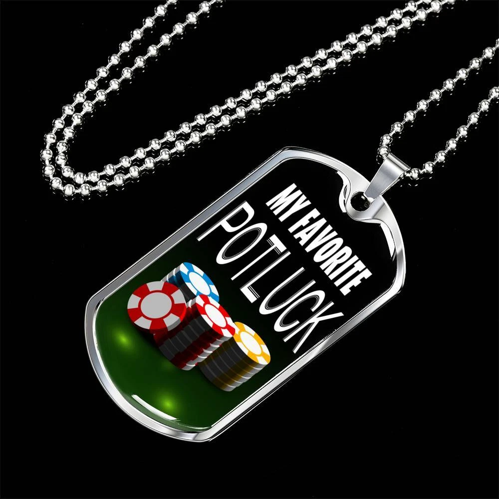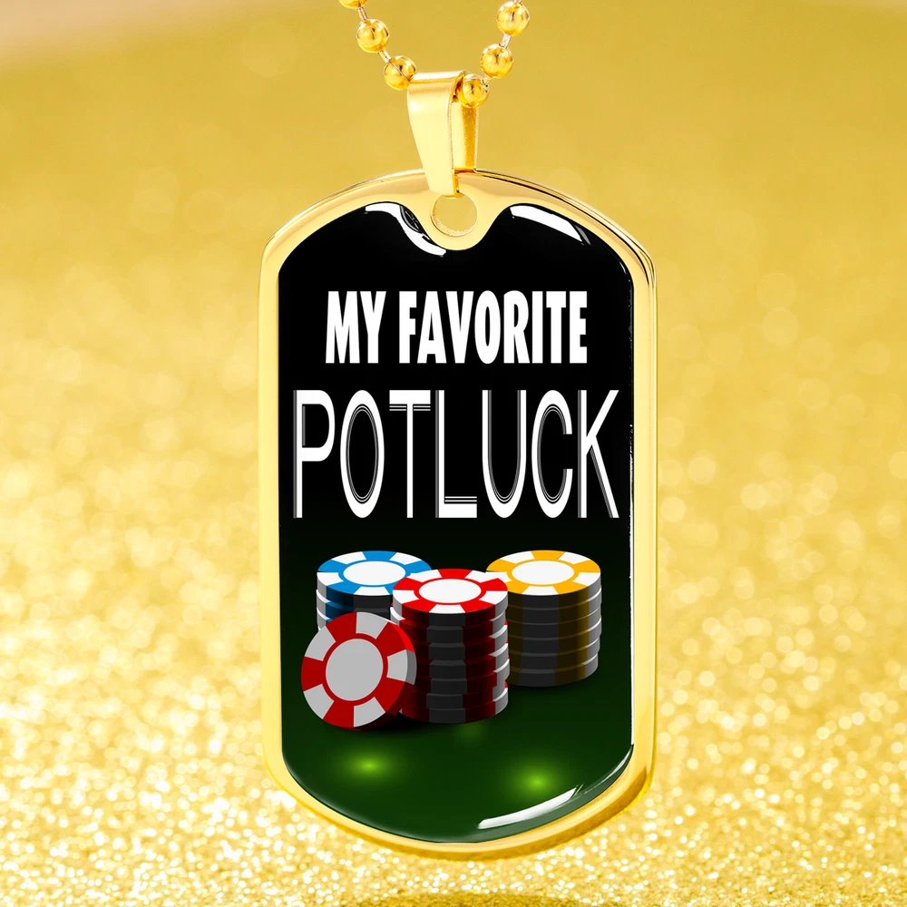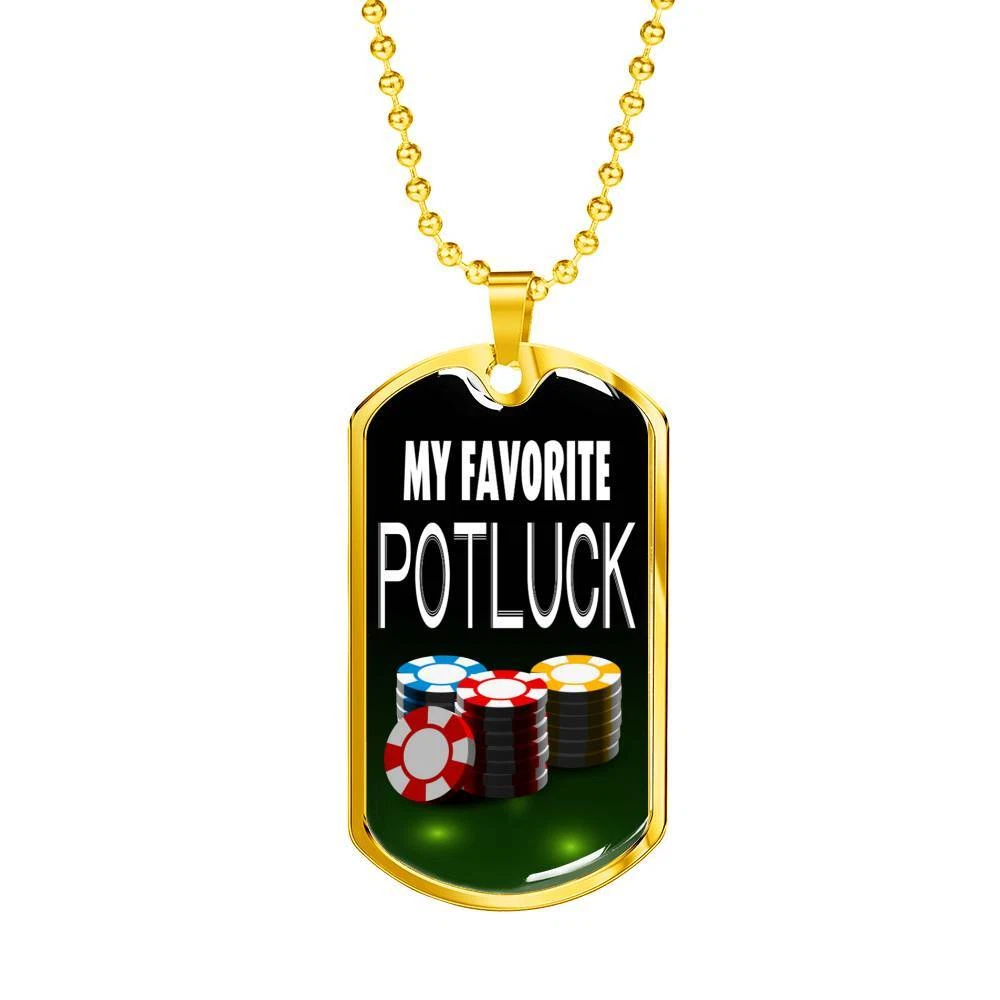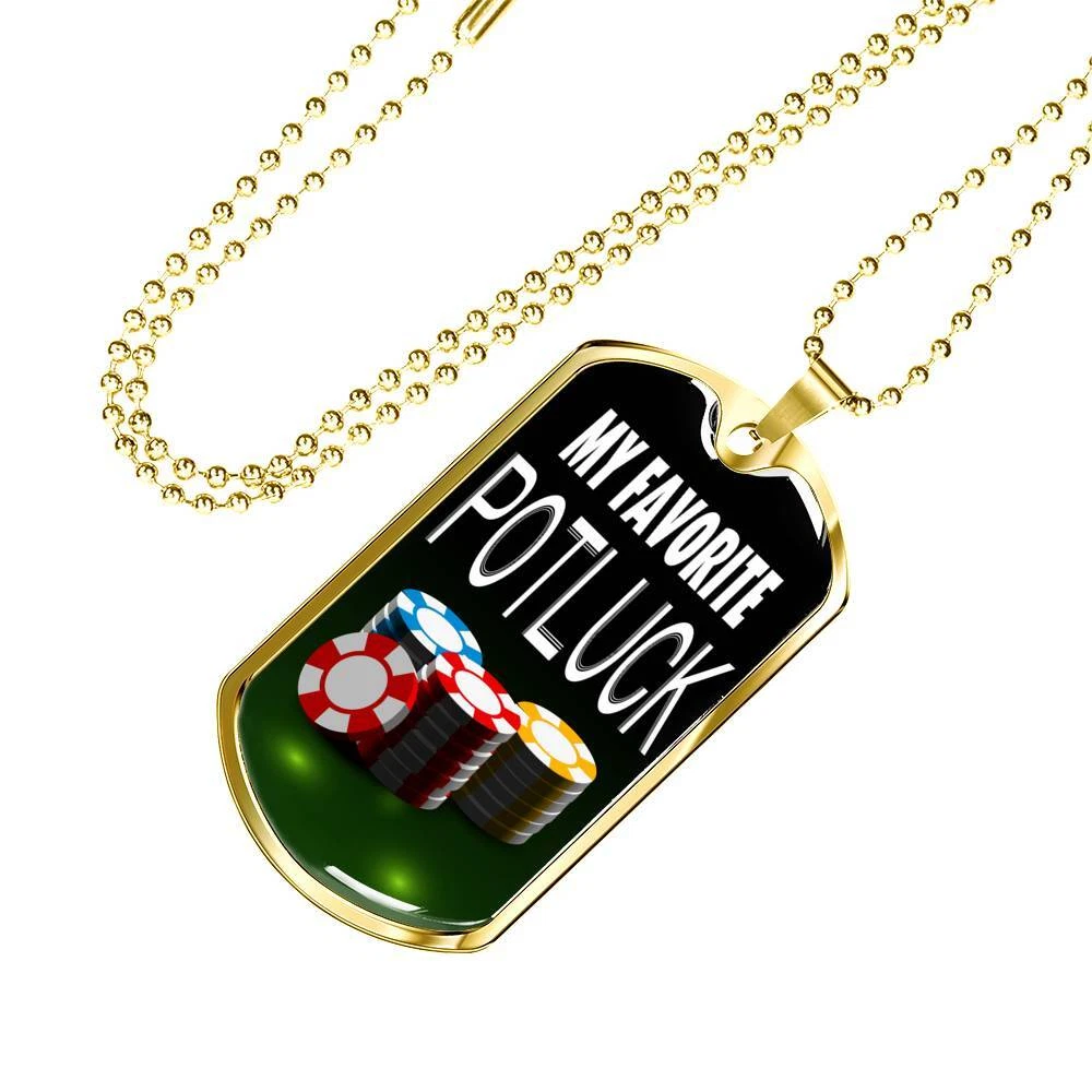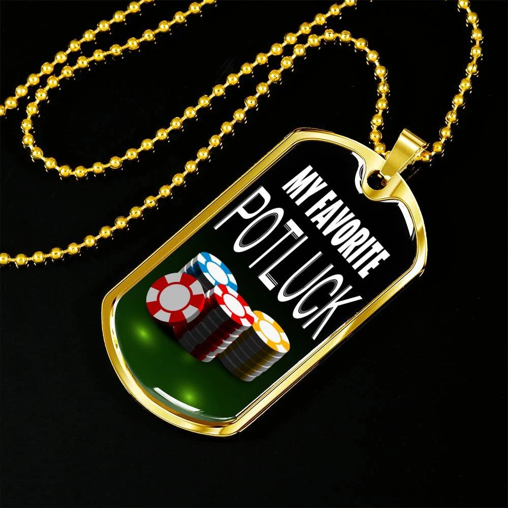 My Favorite Potluck Gambler Dog Tag Stainless Steel or 18k Gold 24" Chain