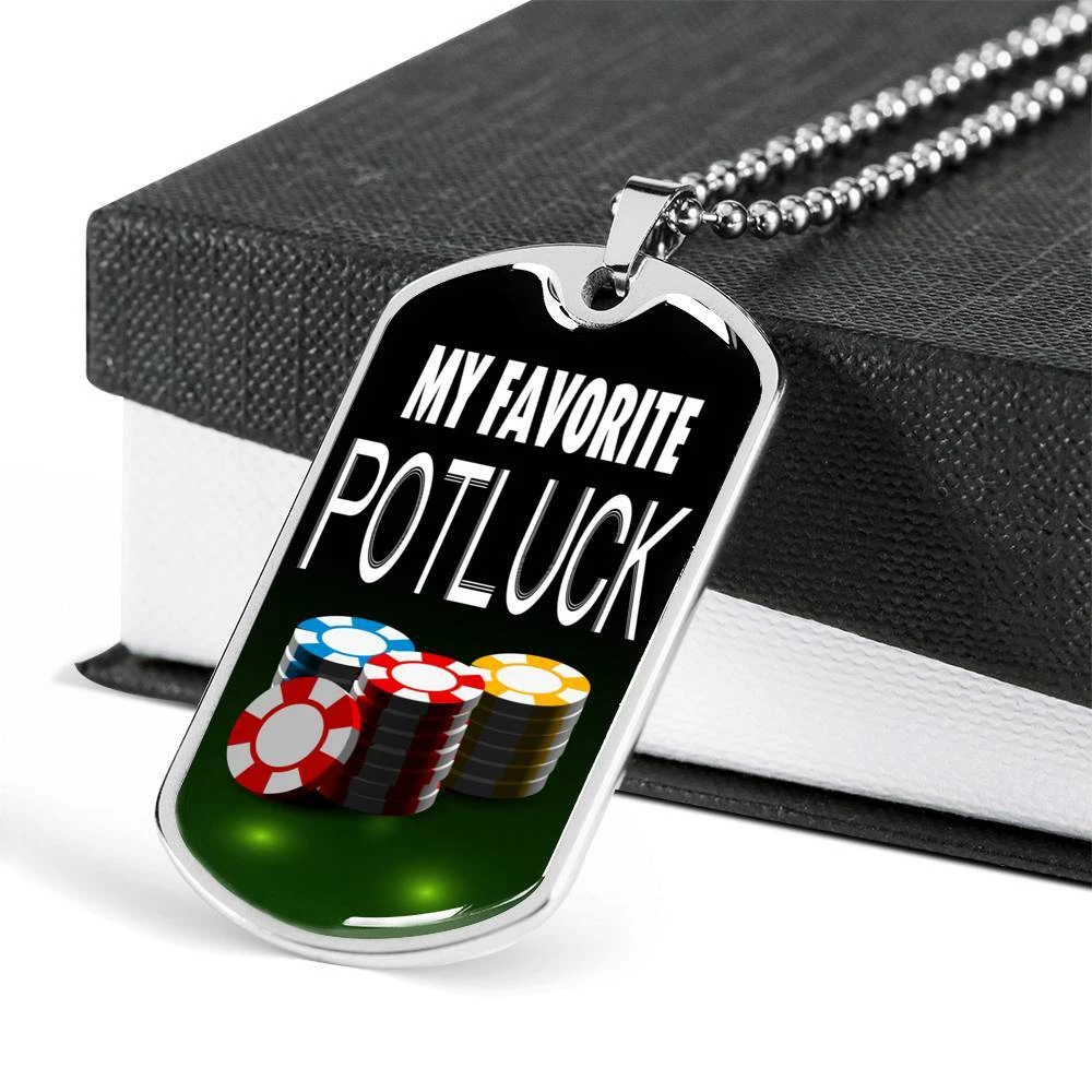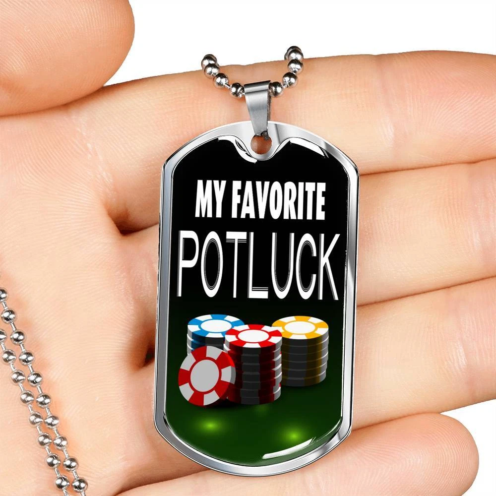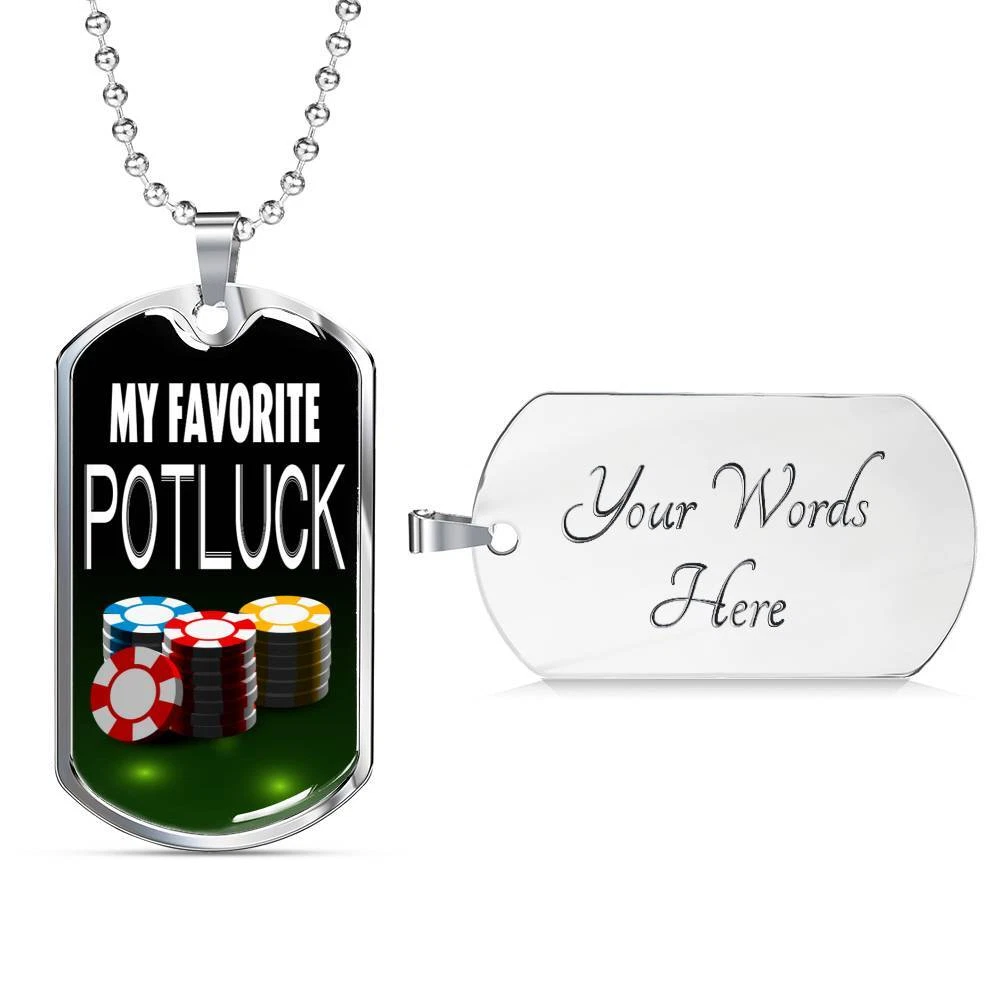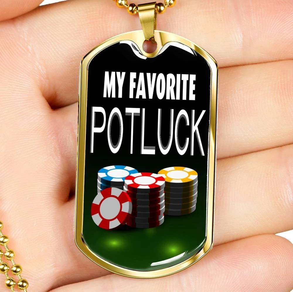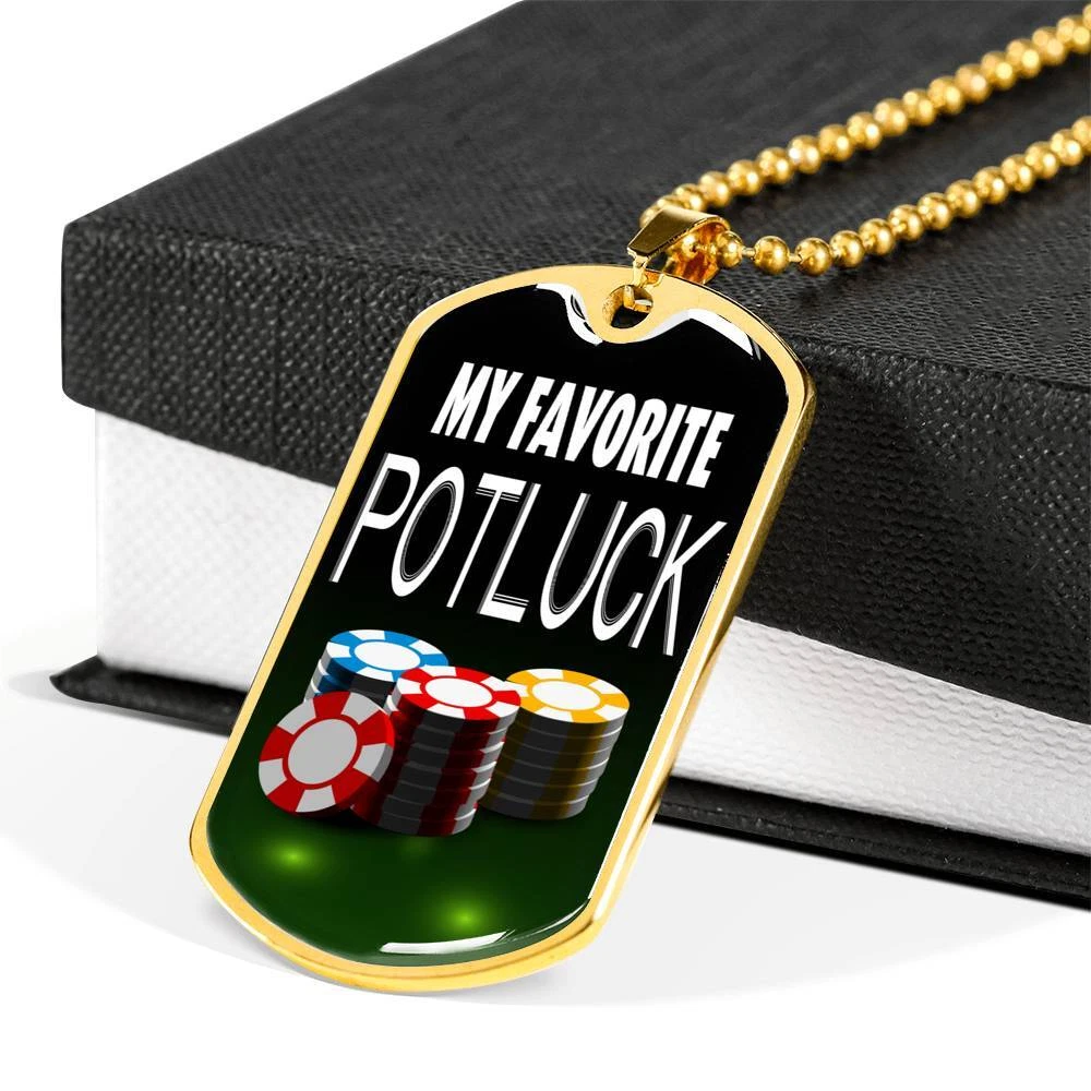 My Favorite Potluck Gambler Dog Tag Stainless Steel or 18k Gold 24" Chain