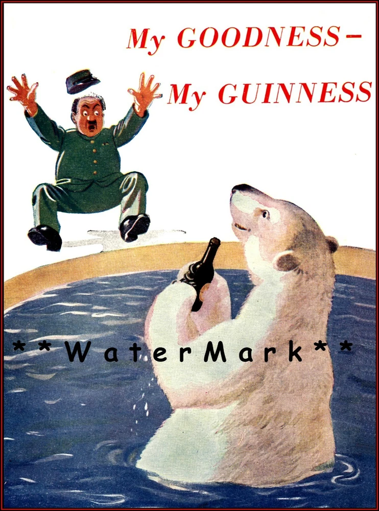 My Goodness Polar Bear Guinness Zookeeper Beer Advertising Vintage Poster Print Retro Style Restored Art ***We offer Free US Postage or Reduced Postage for Canada & Worldwide. **No charges for additional prints worldwide. ***These are not framed or stretched or mounted NOTE:**Delivery dates shown are only "Suggested" Order Early To Avoid Post Delay Dramas **Read Please: The print looks best with a nice mat (passe - partout or passepartout ) and frame. These prints are the exact proportion as the original and will not be stretched to fit the paper or canvas...this would cause a distorted print The image will be the exact aspect ratio as per the original poster, so there might be more white on the top and bottom, or side to side. Options available..use the drop-down menu * Watermark will not be on your image. *Cloth Canvas an artist canvas used also in museums and art galleries *Photo Gloss Paper is a high-quality Professional Photo paper *Matte Photo Paper is a great solution if you do not want a Gloss, this paper is great with colors *Luster Photo Paper this photo paper is neither glossy or matt. Glossy paper has a smooth texture, luster paper is slightly textured. This option is a good choice for something in between Metallic, Photo Gloss and Matte *Metallic Pearlescent Photo Paper is a very high-quality paper with a Pearlescent sheen, a glossy finish, and unique metallic appearance, these prints have extra visual interest and depth. This paper uses a combination of film laminate layers that produce striking, dimensional, lasting images on an ultra-bright background. The effect is sometimes described as "chrome on paper." This is NOT a metal plaque, it is a photo paper This poster print will be shipped in a sturdy container. We will ship usually within 24 business hours of payment, except for weekends or US Holidays If there is a question, please do contact me All is done to send you the best quality poster image. Don't forget to check out the Sales. There is a great Buy 3 Get 1 Free Offer!! Shipped with no extra postage..Worldwide! There are a variety of reasons why the images on your monitors don't match each other. The simplest is that each monitor is different; even monitors with the same model won't have colors that match up perfectly We are located and ship only from the USA The art is not AI generated, these are restored prints from originals READ THIS CAREFULLY: As o f September 2024 ALL orders 4 and over will be shipped US Priority Post at no extra cost to you until end of year !