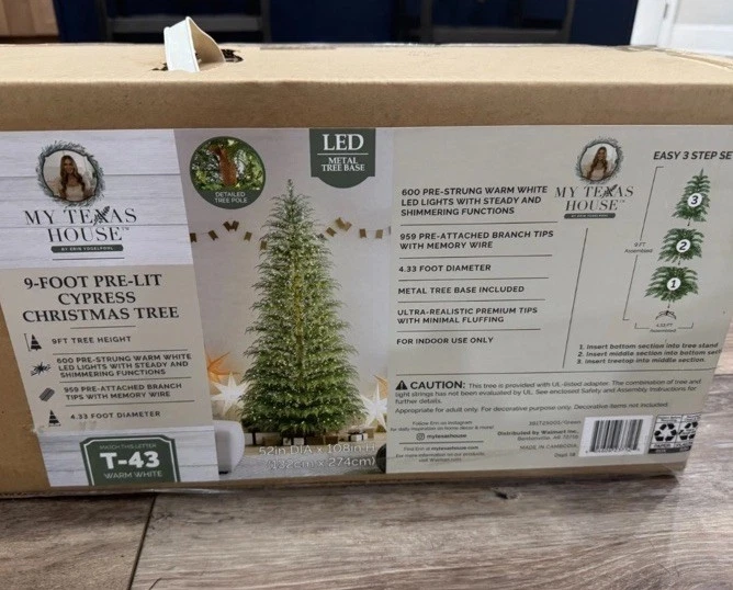 The My Texas House 9 Ft Pre Lit Cypress Tree Christmas is a stunning artificial Christmas tree featuring 600 LED twinkle lights, creating a festive and magical atmosphere for the holiday season. This lifelike tree has a modern style with a vivid and full-bodied appearance, making it perfect for any room indoors. With three dynamic lighting modes and a warm white light bulb color, this conical tree adds a touch of transitional tradition to your holiday décor. Made of PVC and weighing 15 lbs, this tree is easy to set up and maintain, providing a beautiful and hassle-free Christmas experience.