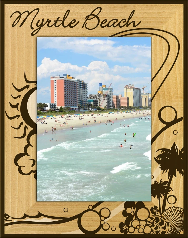 You are buying: Myrtle Beach with Palm Tree Laser Engraved Wood Picture Frame Portrait (4 x 6) Picture Frame is made from Wood Picture Frame Measures 6.50 x 8.50 inches Picture Frame will hold a 4 x 6 Picture This item is Made in the USA Frames are new FREE SHIPPING to U.S. Customers Check out our ebay store where we have all the state magnets, plus lots of other items available. If you need larger quantities than what we have listed. Let us know and we will try to accommodate you.