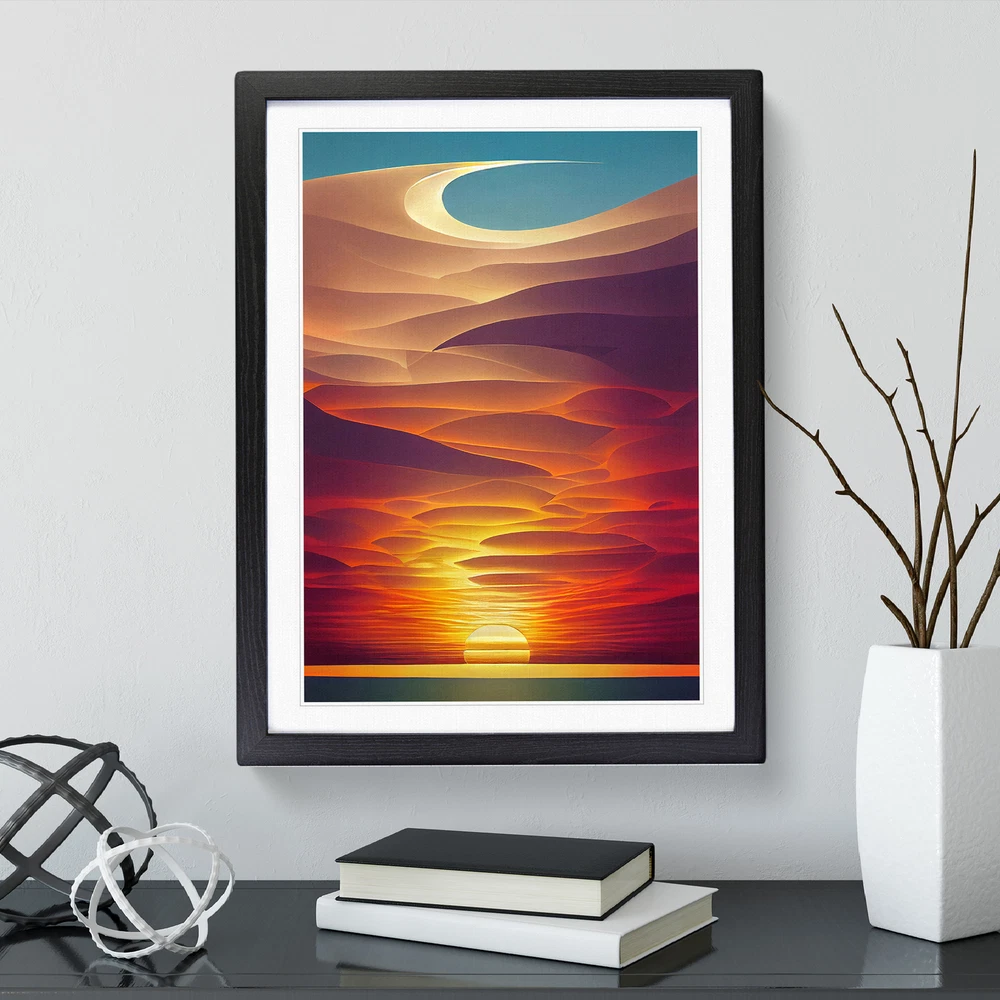 Transform your living space with our captivating framed wall art prints. Crafted in the UK, the stunning Mystical Abstract Ocean Sunset framed print is designed to elevate your home decor. We utilise high-quality inks to ensure the colours of the artwork are rich, vibrant, and true to life. The print seamlessly fits within a contemporary frame, creating a stylish wall art picture that is ready to hang in your living room, lounge, bedroom, dining room and home office. Visit Our Shop eBay Message Framed Art Print Enhance your living space and showcase your individual style with our framed prints. Each design is printed upon premium art paper with fade-resistant inks, ensuring the colours remain rich and vibrant for years to come. The print is encased in a ready-to-hang frame, offered in black, oak, or walnut, and safeguarded by shatter-resistant Perspex. An ideal addition to your home, and the perfect gift choice. Like what you see? Visit our eBay store to see more. Premium Quality : The design is printed on quality art paper, enhanced with fade-resistant colours. Ready to Hang : The frame is pre-fitted with hanging hardware, making wall mounting simple, safe and secure. Frame Dimensions : A4 - 25 x 34 cm / A3 - 34 x 46 cm / A2 - 46 x 64 cm. Fast Shipping : Prompt, reliable UK-based dispatch. Customer Satisfaction : Our priority is your satisfaction which is why we offer a hassle-free return policy. Payment You can pay for your order safely and securely via credit or debit card, Apple Pay, Google Pay, and PayPal. Shipping Production times are 1 to 2 working days. Orders are sent via Royal Mail or Evri (depending on size). Returns For your peace of mind, we have a 30-day returns policy in place. Please, contact us for more details. At Big Box Art, we are dedicated to providing high-quality wall art and decorative homeware items. From the outset, we've focused on excellence in our products, service, and reputation, continually enhancing our standards. With an extensive selection of designs, you're certain to discover the perfect piece to suit your taste. ? Copyright 2021, Big Box Art. All rights reserved. Made with by eBayshopdesign.org