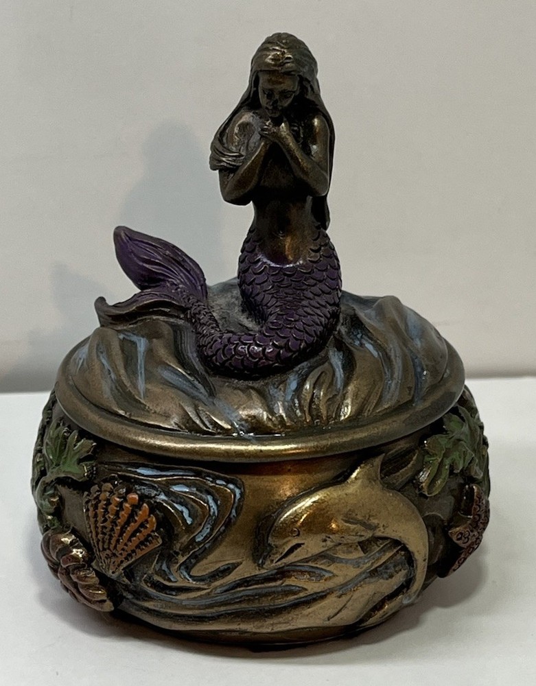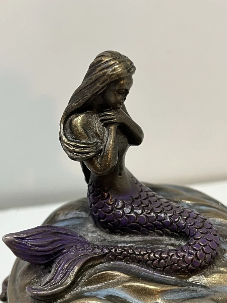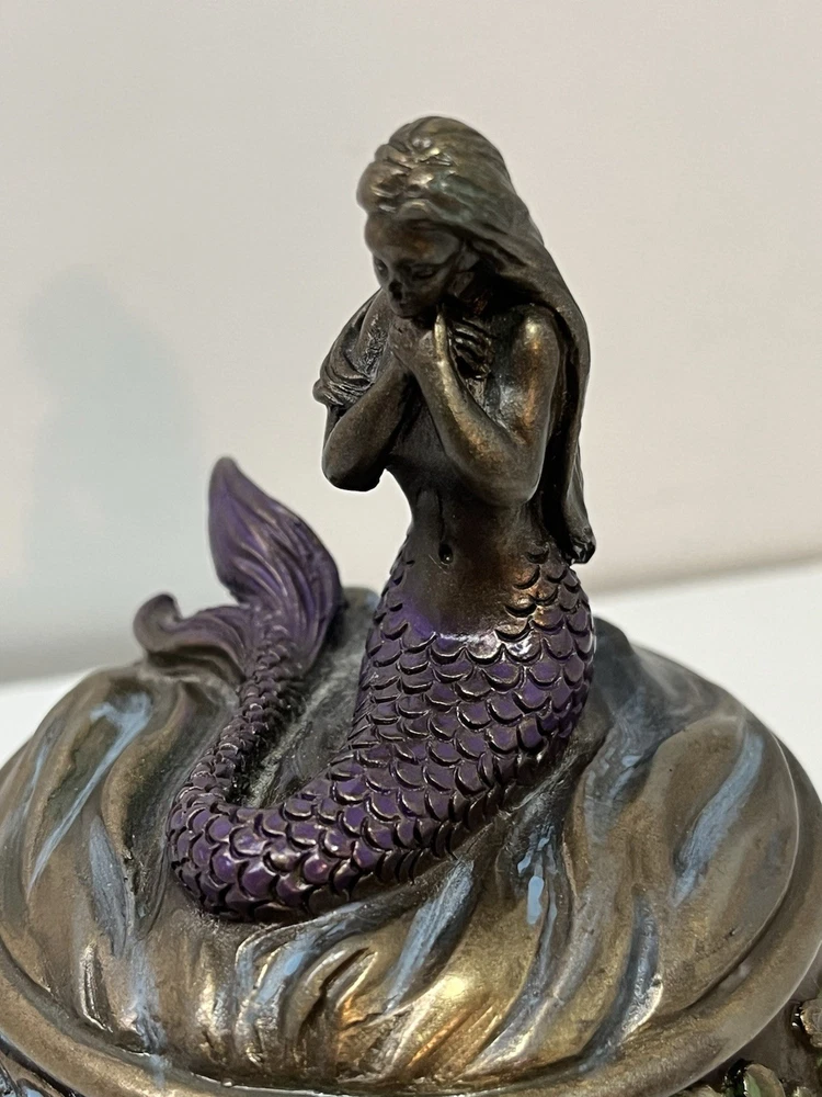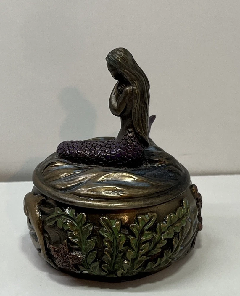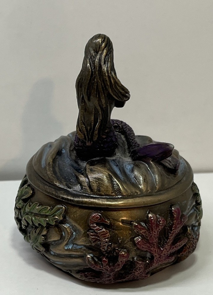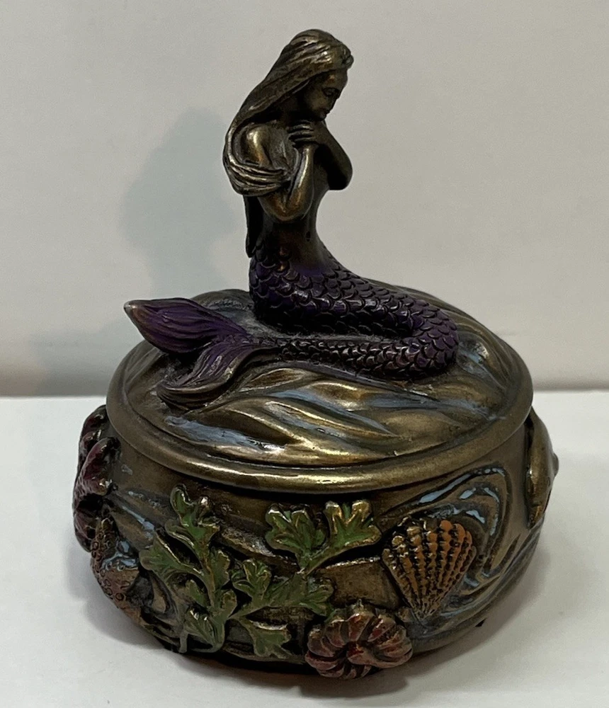 Ocean Mermaid Jewelry Trinket Box Mystical Aquatic Sea Creature Art Nouveau With Lid - This Unique Piece Is In Great Used Condition. Measurements included in images. Please thoroughly inspect all photos SHIPS CAREFULLY