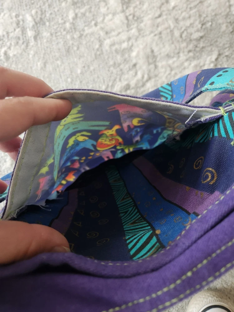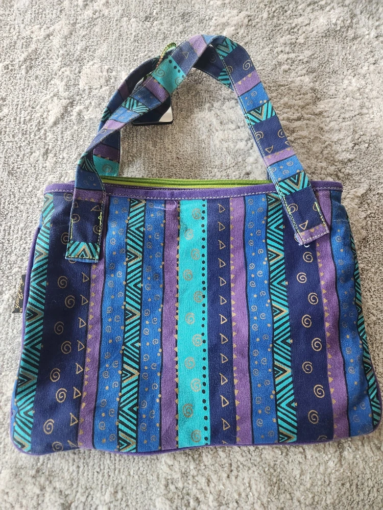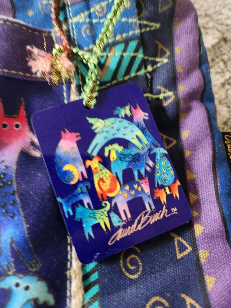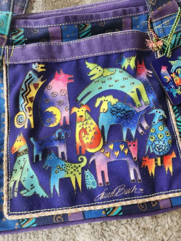 Mythical Dogs Laurel Burch Medium Canvas Purse Tote Bag Handbag Purple Blue. Never used but has been stored for a while