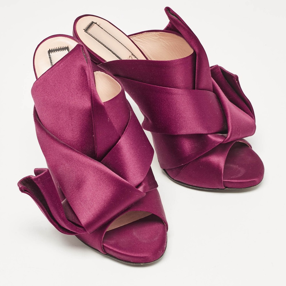 Our eBay Store About Us Contact Us Add to Favorite Sellers Nº21 Burgundy Satin Raso Knot Peep Toe Mules Size 39 Add a touch of luxury to your wardrobe with these Nº21 peep-toe mules in burgundy satin. The signature oversized knot detail with the sleek silhouette and rich hue make these mules a standout option for special occasions. Product Details Brand N21 Color Burgundy Heel Height 13 cm Material Satin Size 39 Certified by The Luxury Closet This item has gone through a detailed authentication process overseen by our experts. We offer a lifetime guarantee of authenticity on all our items. How We Check The in-house team of experts at The Luxury Closet is highly trained to verify the authenticity and the condition of the luxury products. They ensure that only 100% authentic items are put on sale.The evaluation process is unique with its own mix of assessment criteria and differs according to the category. Each item is evaluated based on the following combination of hallmarks, hardware, stitching, symmetry, material, craftsmanship, stamping, codes, hologram stickers, and packaging. Our authenticators also check if the items have been modified or amended (e.g., aftermarket diamonds, replaced batteries, repaired bags, etc.) International Buyers Import duties, taxes and charges are not included in the item price. These charges are the buyers responsibility. Please check with your country’s customs office to determine what these additional cost will be prior to buying.