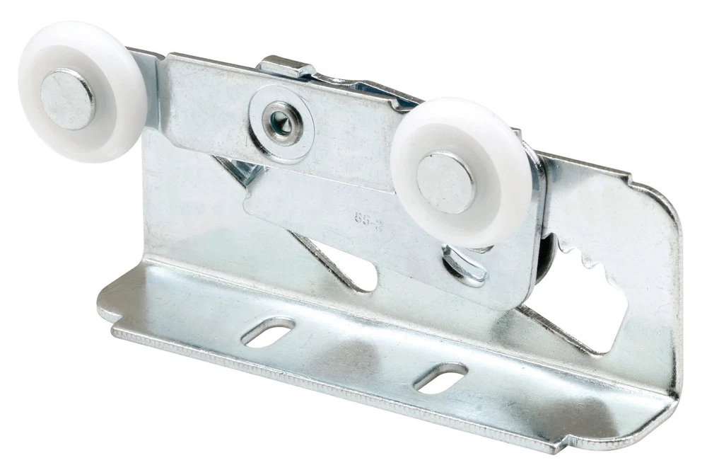 Product Description This tandem roller assembly is constructed from nylon. It features an adjustable top mount design with round edge nylon wheels with a 1/2 inch nut. It fits Acme and other similar styled doors that are 3/4 inch to 1-3/4 inch thick. From the Manufacturer This tandem roller assembly is constructed from nylon. It features an adjustable top mount design with round edge nylon wheels. It fits Acme and like styled doors that are 3/4 to 1-3/4 in. thick. Used as a pocket door top roller, found on Acme doors Fits 3/4 inch to 1-3/4 inch thick doors Adjustable bracket for mounting, please use a bubble level to ensure the rollers keep the door parallel for best rolling results Stamped steel construction with zinc finish and 7/8 inch diameter nylon roller Please refer to the line art drawing and compare with your original item before purchasing