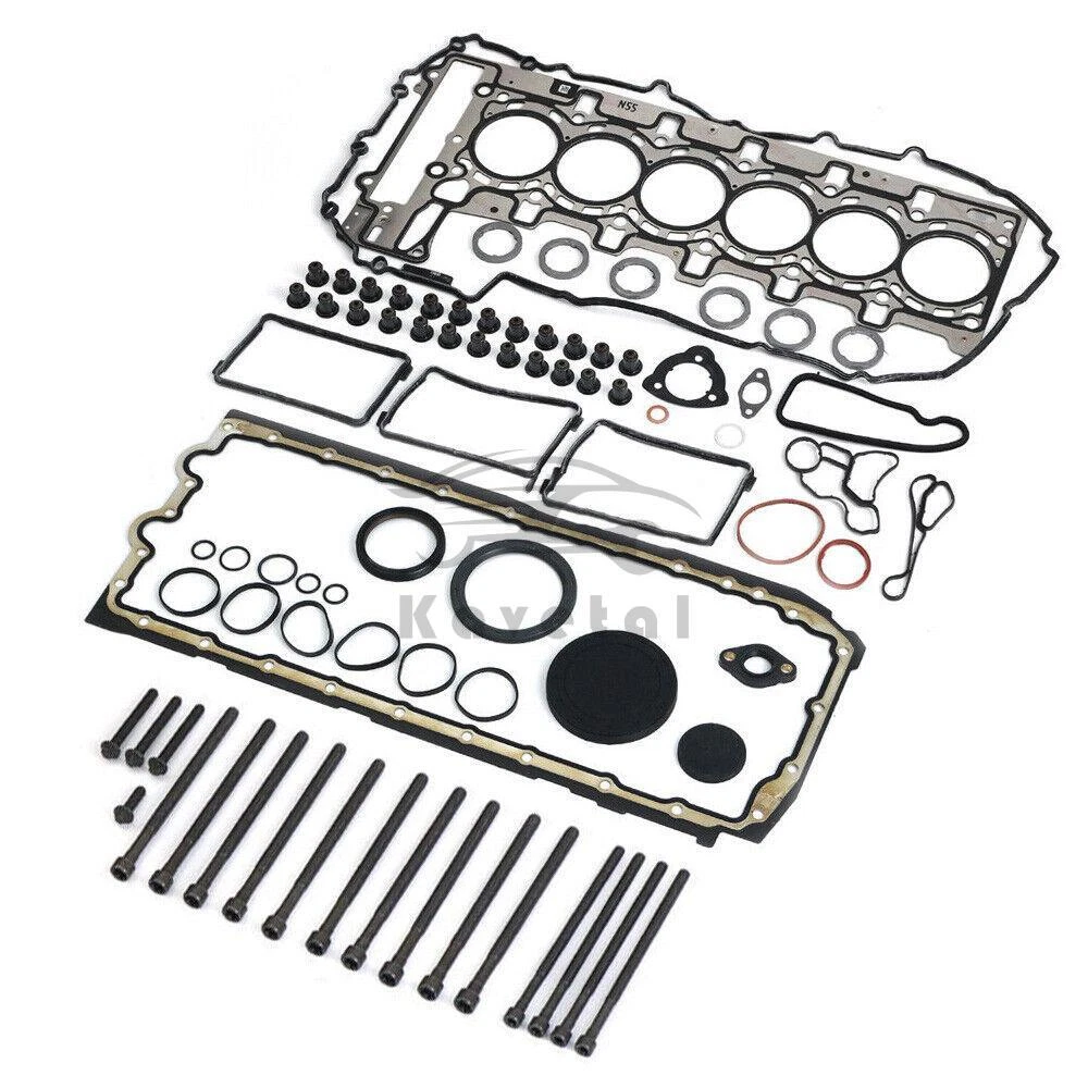 Engine Overhaul Gasket Seals Kit + Head Bolts Set For BMW F10 F20 F21 F23 F30 F32 F80 M 135i 235i 335i 435i 535i 640i X3 X4 X5 X6 N55B30 N55B30A 3.0L L6 Turbocharged Fit N55B30 3.0 L6 (2979cc) Turbocharged Please send VIN number to us before order OE# 11 12 7 599 212 11 12 7 587 804 11 13 7 600 482 11 11 7 587 168 11 11 7 530 262 11 11 8 618 864 11 34 0 035 853 11 12 2 165 470 61-38060-00 15-10002-01 71-41291-00 186.030 299.770 298.130 Spec - Cylinder bore 84.00mm (STD) - Fit N55B30 3.0 L6 (2979cc) Turbocharged Package includes 1set x Overhaul Gasket Seals Kit 1set x Head Bolts Fit Car Model Brand & Model Produce Year Fit Engine BMW N55 3.0 L6 (2979cc) Turbocharged 135i 2011-2013 E82 E88 M135i 2012-2016 F20 F21 M235i 2012-2016 F22 F23 335i 2010-2013 E90 E91 E92 E93 335i / 335i xDrive 2011-2015 F30 F31 335i GT 2012-2016 F34 435i 2013-2016 F32 F33 F36 535i 2011-2017 F10 F11 535i GT 2009-2017 F07 640i 2011-2018 F06 F12 F13 740i / 740Li 2011-2015 F01 F02 X1 xDrive35i 2010-2015 E84 X3 xDrive35i 2009-2017 F25 X4 xDrive35i 2013-2018 F26 X5 xDirve35i / xDrive40i 2010-2018 E70 F15 X6 xDrive35i / xDrive40i 2011-2019 E71 E72 F16
