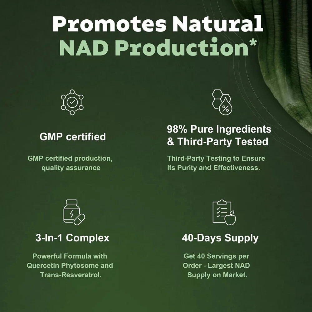 Describtion: Content:80 capsules Shelf life:3 years Product functions and features include: 1. Efficient energy: Nicotinamide Riboside can help the body synthesize more energy, improve the body's metabolic level and energy status, and make you more energetic. 2. Anti-aging: Nicotinamide Riboside is rich in NAD+, which can promote cell and DNA repair, delay cell aging, and keep you young and energetic. 3. Comprehensively enhance immunity: Nicotinamide Riboside can transcribe the differentiation and function of different types of immune cells, and has a significant immunoregulatory effect on the regulation of hormones and cell signals produced by the immune system. 4. Improve heart disease: Nicotinamide Riboside can increase intracellular NAD+ levels, thereby activating genes such as SIRT1, SIRT3, and SIRT6, and improving cardiovascular health problems. 5. Environmentally friendly and healthy: Nicotinamide Riboside is a natural substance that is environmentally friendly. The waste gas generated by incineration does not pollute the environment and is suitable for the needs of environmentally friendly and healthy people. Comment: 1. Manual measurement tolerance is 2-5g. Please don't mind your substitution. 2. Due to differences between different monitors, the image may not reflect the actual color of the item. Thank you so much! 3. SKU color is the color of product packaging Package Included: 1 Pack = 80 Capsules