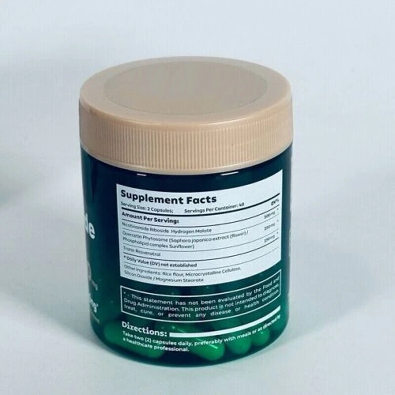 Note: This product only has health care functions and cannot replace medication! 1. Manual measurement tolerance is 2-5g. Please don't mind your alternative. 2. Due to the differences between different monitors, the image may not reflect the actual color of the project. Thank you so much! 3. Suppliers sometimes change the outer packaging, please understand this situation. Manufacturers sometimes replace the outer packaging and randomly send out new or old packaging. If you mind, please do not purchase, hope your kind understanding! Key Benefits: 🔋Increase NAD by 63% - Fight aging with our Liposomal Nicotinamide Riboside, Resveratrol, and Quercetin blend. This powerful combination helps your body absorb and utilize NAD precursors more efficiently, providing wonderfeel results. 📈Boost Absorption by 71% - Maximize bioavailability with our Liposomal Nicotinamide Riboside encapsulation technology. Experience 50% more effectiveness compared to other delivery methods. Why Choose Our Supplement? 💪Feel Youthful Again - Our daily dose supports healthy aging, energy production, focus, and longevity. 🌿High-Quality Ingredients - Crafted with a unique blend of Liposomal Nicotinamide Riboside, Resveratrol, and Quercetin for optimal health benefits. ⚡Enhanced Bioavailability - Advanced encapsulation technology ensures you get the most out of each capsule. Rejuvenate your body and mind with our Liposomal Nicotinamide Riboside, Resveratrol, Quercetin supplement. Experience the benefits of healthy aging and increased energy today!🌟 Package Included: 1* Nicotinamide Riboside Supplement (1 Pack) How to Use: Take 2 capsules every day with or without food or as directed by your healthcare professional. Storage: After opening, please seal and store in a cool place away from direct sunlight. You can put in the refrigerator, but that is not necessary. We recommend you store it in a well-closed container away from moisture, direct sunlight, and heat Warn: Always consult your healthcare professional prior to use if you have or suspect a medical condition of any kind, or are taking prescription medication. Do not use if you are pregnant or nursing. Not suitable for children under the age of 18. Store in a cool, dry place. Keep out of reach of children.