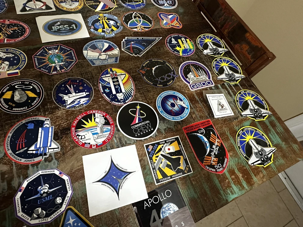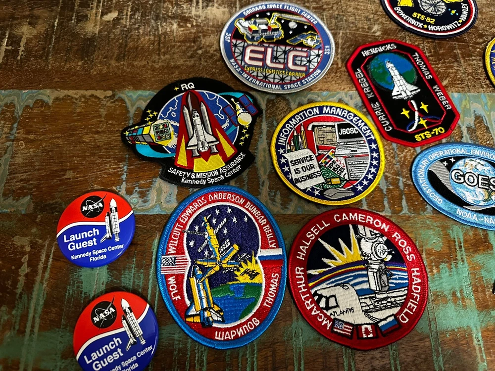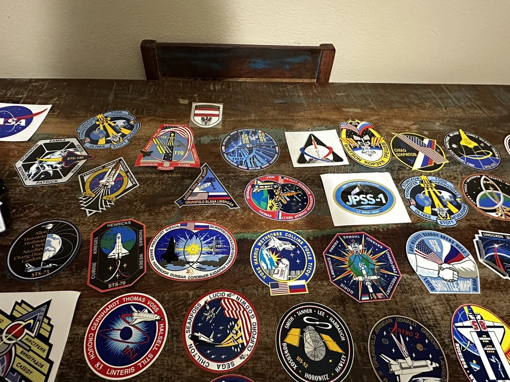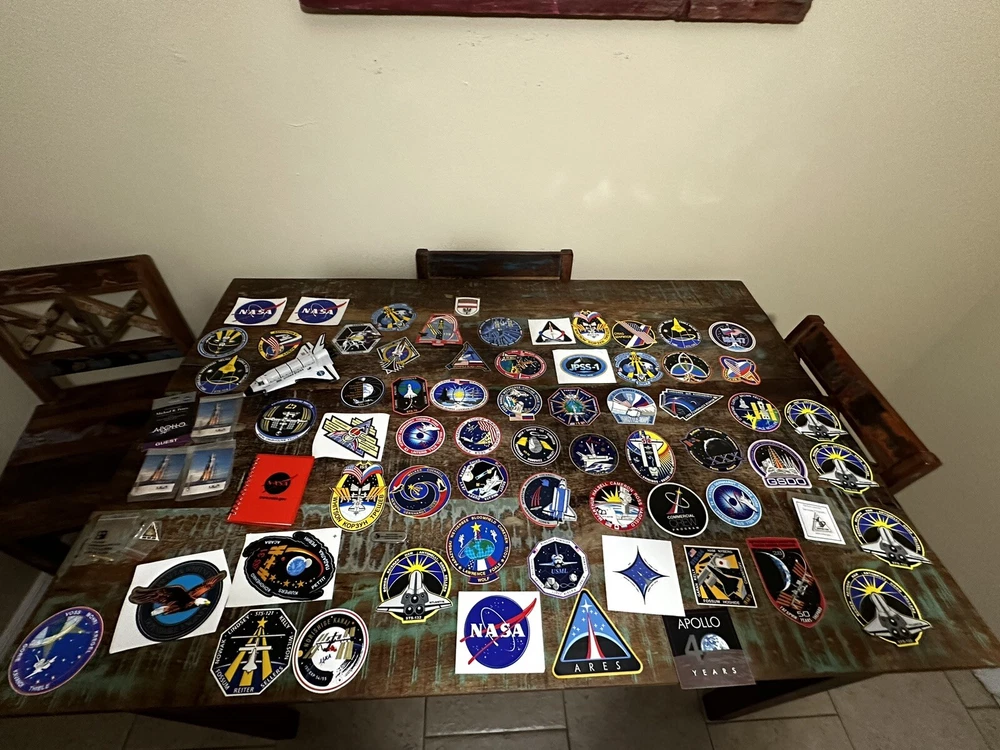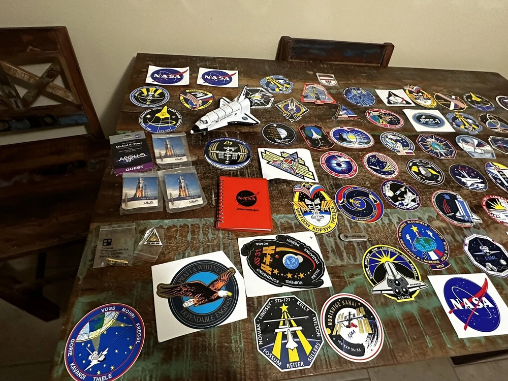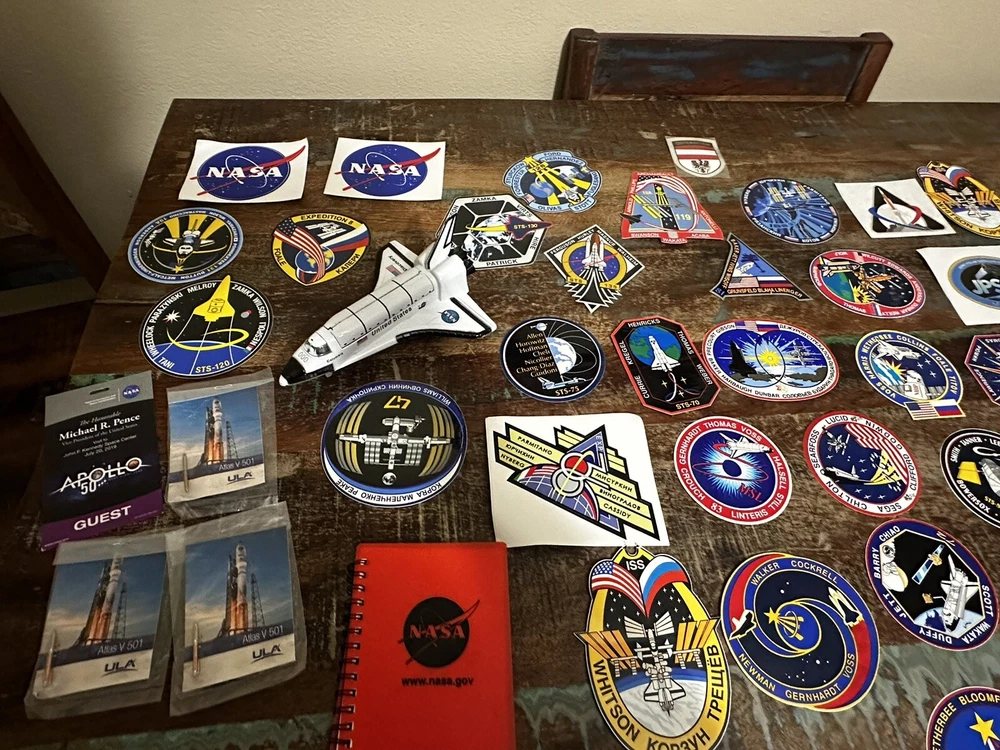 This NASA patch collection is a must-have for any space enthusiast. With a variety of patches from the 2000's, each featuring a unique design and theme, this collection is perfect for those interested in astronauts and space travel. Whether you're a collector looking to add to your existing memorabilia or just starting out, this collection is sure to impress. Each patch in this collection is authentic and made in the United States, making them a rare and desirable addition to any collection. From the NASA program to space exploration in general, this collection covers a wide range of topics. Don't miss out on the opportunity to own a piece of history. Many pins and stickers as well this is a once and a lifetime opportunity!
