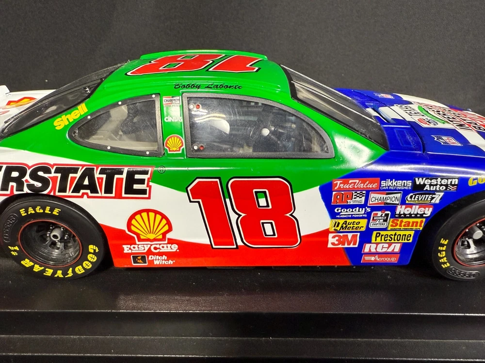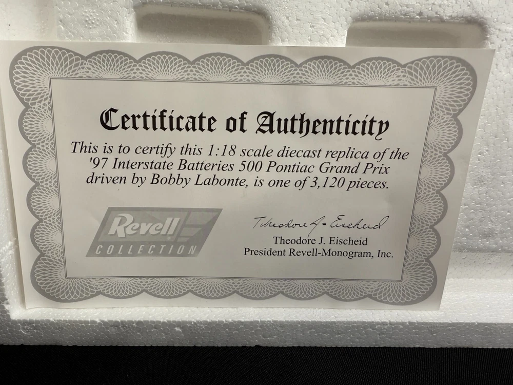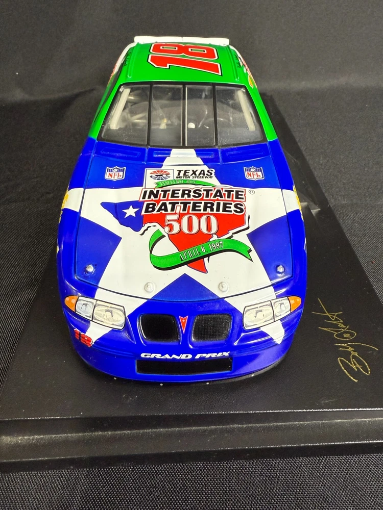 The product is a Revell 1:18 diecast model of the NASCAR #18 Interstate Batteries 1997 Pontiac Grand Prix. It is a replica of a sport & touring car from the NASCAR organization. Used - packing may show signs of wear SB