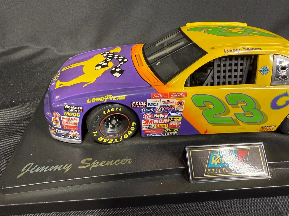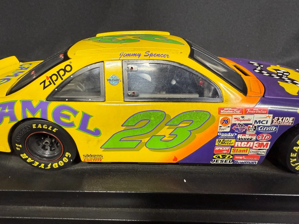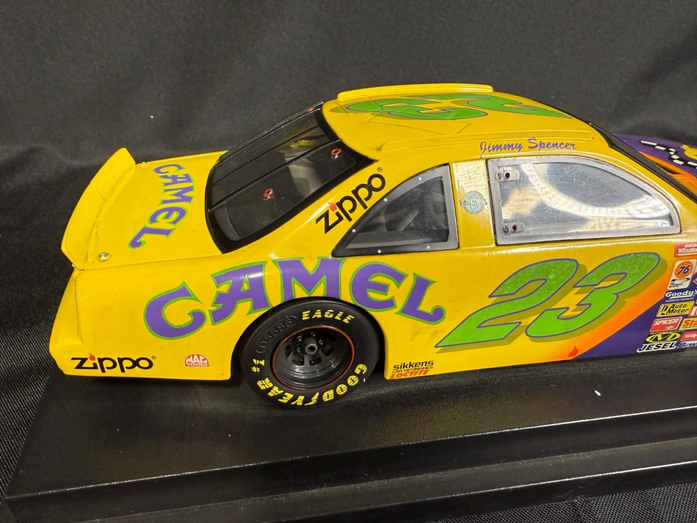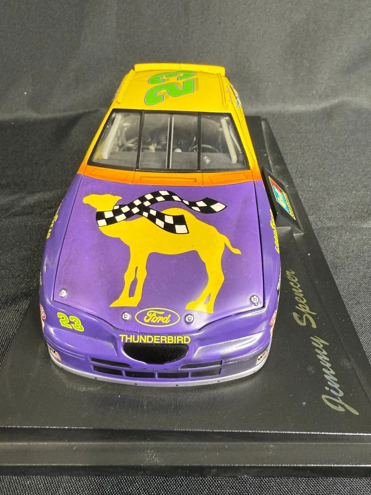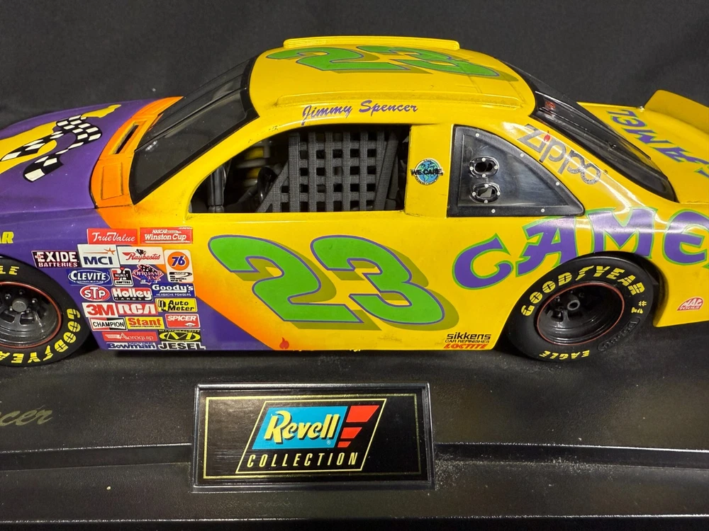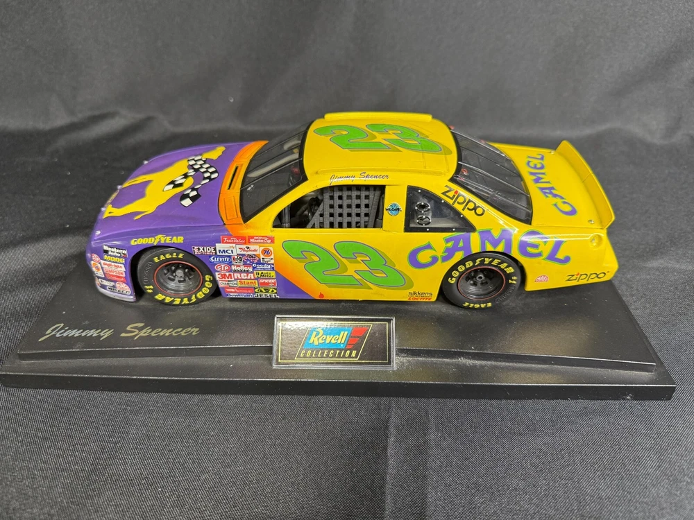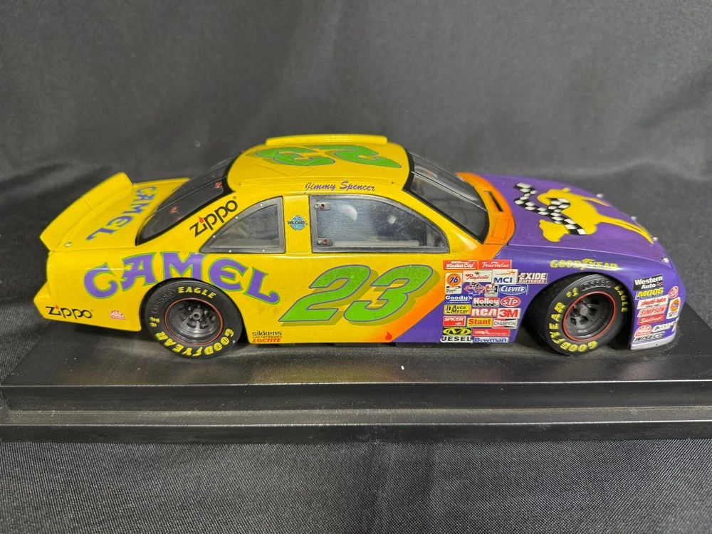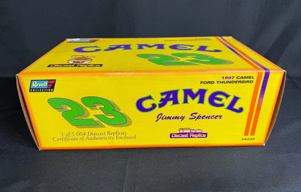 The NASCAR #23 Camel 1997 Ford Thunderbird Revell 1:18 Scale Diecast Model is a detailed replica of a Ford Thunderbird race car from the 1997 NASCAR season. Produced by Revell in 1:18 scale, this diecast model captures the essence of a racing car used in the sport, featuring the Camel branding and design elements specific to that year's Thunderbird model. Used - packaging may show signs of wear. SB
