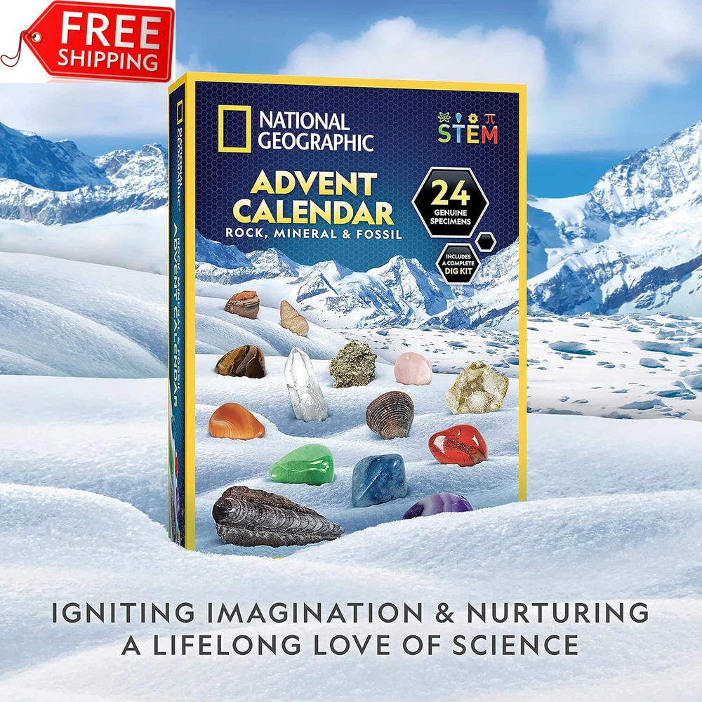 Store New Arrivals Add to Favorite View Feedback Contact NATIONAL GEOGRAPHIC Rock Collection Advent Calendar 2024 - Advent Calendar for K Description Condition New: A brand-new, unused, unopened, undamaged item in its original packaging (where packaging is ... Brand Does not apply Type Does not apply Item model number NGRMFADVENT2 Warranty Description We're proud to make the highest quality products which are backed Assembly required No Batteries required No Product Dimensions 7.28 x 1.69 x 10 inches Material Crystal,Gems Country of Origin China Item Weight 1.19 pounds Color Advent Calendar Theme Advent Age Range (Description) 6 years and up Included Components Advent Calendar, Minerals & Fossils, 24 Gemstones eBay NATIONAL GEOGRAPHIC Rock Collection Advent Calendar 2024 - Advent Calendar for Kids with 24 Gemstones, Minerals & Fossils for Kids, Complete Gem & Fossil Collection Christmas Countdown Calendar STUNNING SPECIMENS FROM AROUND THE WORLD - The polished rocks, gems, and fossils in this advent calendar include Geode; Pyrite; Rose Quartz; Red, Black, and Green-Spotted Jasper; Agate; Tiger's Eye; Brachiopod; Black Urchin & more! 24 DAYS OF TREASURES - Each day leading up to Christmas, kids open a panel to reveal a special rock, mineral, fossil or gemstone! With this Christmas countdown calendar, they can start a rock collection they will enjoy all year round, with storage bag included! DIG OUT A SPECIAL CRYSTAL ON THE FINAL DAY - The final piece in this collection is a stunning Rose Quartz specimen that kids will unearth from a mini dig brick. Dig tool and brush included, with a magnifying glass for looking at all the pieces up close! A HOLIDAY GIFT THAT LASTS A LIFETIME - Rock and mineral collecting is a popular hobby, and this rock collection kit is the perfect way to inspire a lasting love of geology for kids, and teach them about the fossils, rocks and crystals inside! HIGH-QUALITY EDUCATIONAL TOYS - National Geographic is proud to make the highest quality hands-on science toys, and all are backed by exceptional service and a commitment to your satisfaction. Product Description NATIONAL GEOGRAPHIC 2024 Rock, Mineral & Fossil Collection Advent Calendar The video showcases the product in use. The video guides you through product setup. The video compares multiple products. The video shows the product being unpacked. Celebrate the season with science and the National Geographic 2024 Rock, Mineral & Fossil Advent Calendar! Each day as Christmas approaches, kids will open an exciting new specimen to add to their collection, complete with collector's pouch! Celebrate the season with the 2024 Rock & Fossil Collection Advent Calendar! Kids love rocks, gems, and fossils, and this exciting Christmas countdown calendar will give them a new specimen to add to their collection each day as the holiday approaches. The fun and excitement culminate on the final day, as kids unearth a shimmering rose quartz specimen from the included mini dig brick, just like a real geologist! This educational take on a classic holiday tradition includes the following rocks, gems, and fossils: Agate, Green Aventurine, Green Fluorite (Rough), Geode, Tiger's Eye, Snowflake Obsidian, Pyrite (Fool's Gold), Red Jasper, Blue Quartz, Red Agate, Amethyst, Blue Calcite (Rough), Polychrome Jasper (Rough), Quartz Point, Rose Quartz (in dig brick), Crinoid, Brachiopod, Orthoceras, Bi-Valves, Gastropod, Clam, White Urchin, Coral, and Black Urchin. This advent calendar also includes a pouch for storing their treasures, as well as a magnifying glass and identification sheet for closer examination of their new collection. Rock and mineral collecting is a fascinating and popular hobby kids love, and the 2024 National Geographic Advent Calendar is a great introduction for boys and girls with an interest in geology. They'll love collecting and learning about these premium rock, fossil and mineral specimens that were formed over millions of years! Put a scientific twist on the holidays this year with the National Geographic Rock, Mineral & Fossil Advent Calendar! We make the highest quality hands-on science toys, and all products are backed by exceptional service. With a mission to inspire people to care about the planet, the National Geographic Society is one of the world’s largest nonprofit scientific and educational organizations. Countdown to the Holidays with National Geographic Advent Calendars! 24 Magic Tricks & Experiments Kids will perform a fun magic trick or cool science experiment each day! Gems, Jewelry Settings & More! Discover one of 24 gorgeous gemstones each day leading up to Christmas! 24 Experiments & Specimens Kids will conduct an experiment or uncover a rock or fossil specimen each day! Celebrate with Science! Celebrate the season with science and magic fun for the whole family! Celebrate with Science! Explore the wonders of geology and start a collection with these specimens! Celebrate with Science! Celebrate the holidays with hands-on science and geology fun for everyone! Item model number NGRMFADVENT2 Warranty Description We're proud to make the highest quality products which are backed by exceptional service. Assembly required No Batteries required No Product Dimensions 7.28 x 1.69 x 10 inches Material Crystal,Gems Country of Origin China Item Weight 1.19 pounds Color Advent Calendar Theme Advent Age Range (Description) 6 years and up Included Components Advent Calendar, Minerals & Fossils, 24 Gemstones Shipping Fast shipping is very important for us. Our standard US shipping service is FREE. Your order will be shipped within 1-3 business days upon full payment received. Your order will be delivered within 1-3 business days after the handling time. We reserve the right to cancel any order for any reason at any time. We are not responsible for undeliverable addresses. Returns and payment We offer a 30-day return policy from the date of payment received. This return policy covers Incorrectly Shipped items, Br