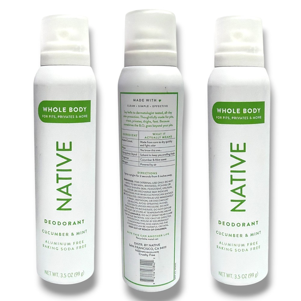 *NATIVE Whole Body Deodorant Cucumber & Mint 3.5oz./99g New; LOT OF 3
