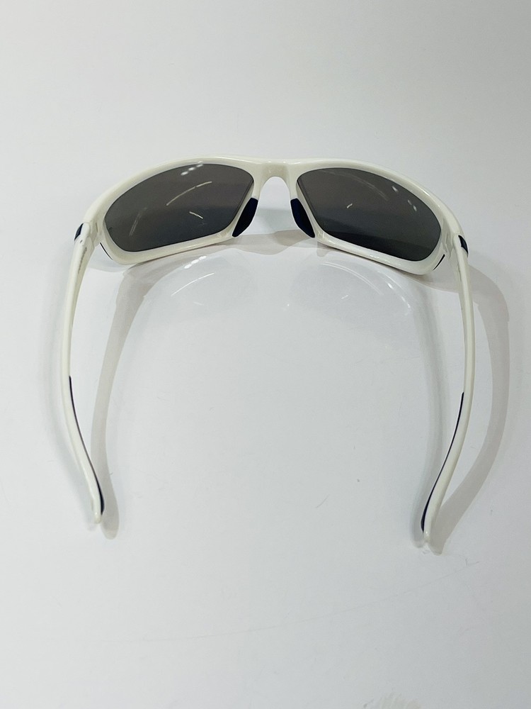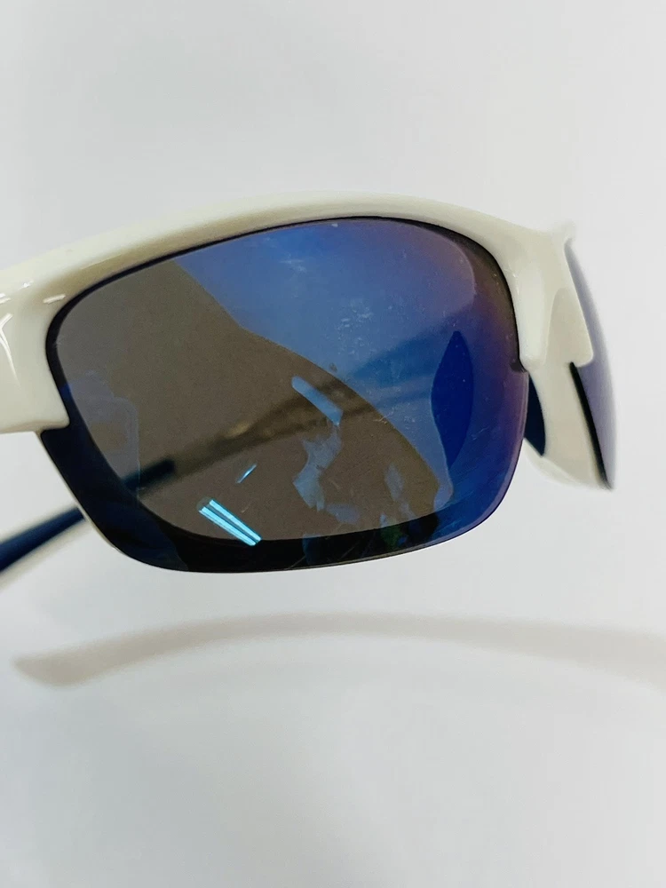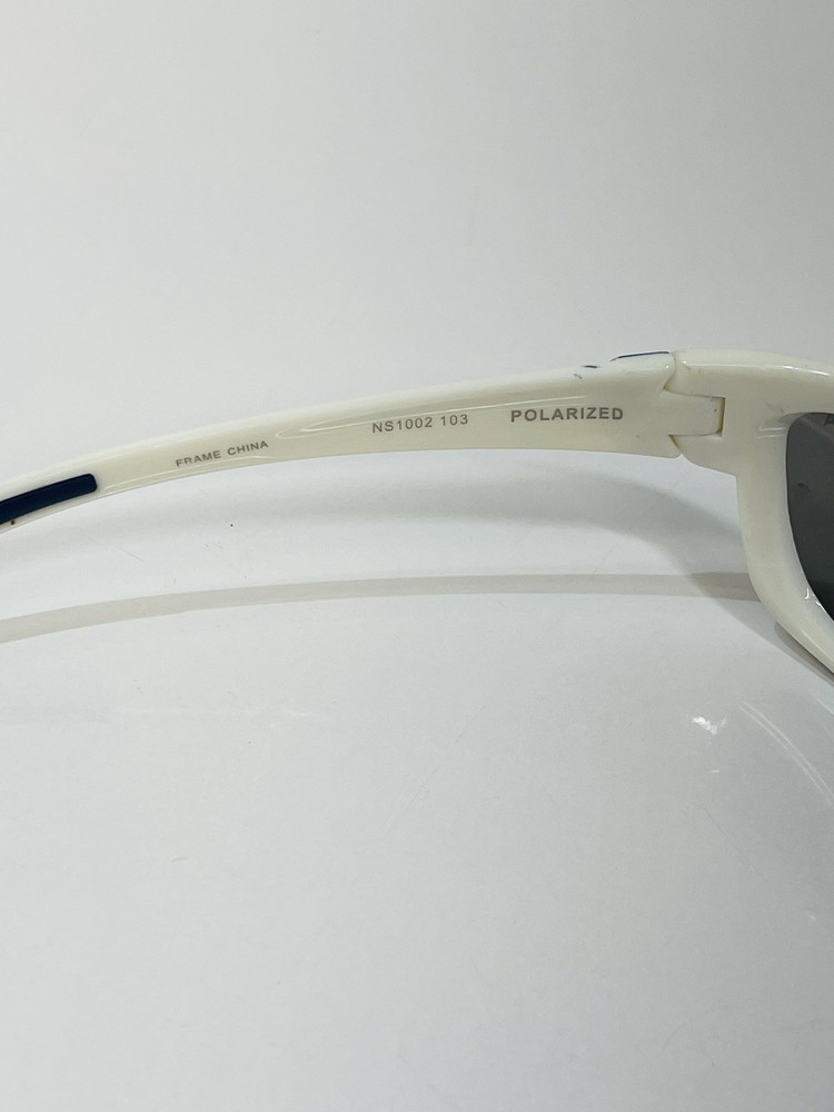 The Nautica polarized sunglasses are in good condition. There is some light scuffing and a scratch on the lenses and a mark on the white frame. Otherwise there are in usable condition.