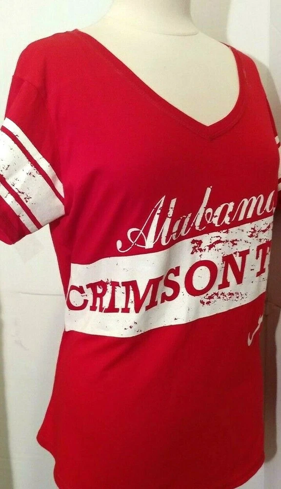 Women's NCAA Alabama Crimson Tide Red w/ white Trim and script Logo Glitter Dust V-neck Label size Small but armpit to armpit - 20" Excellent Condition