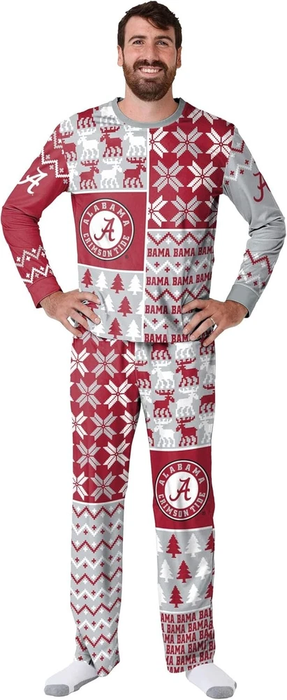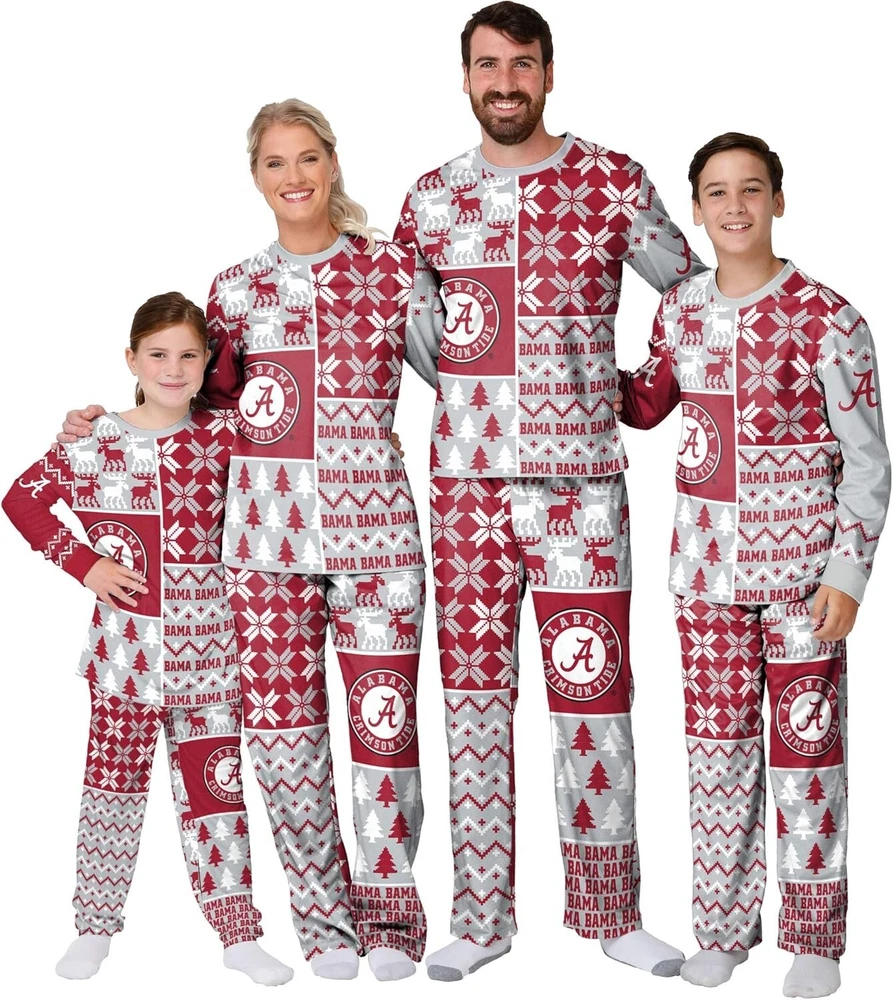 NCAA mens Busy Block Family Matching Collection Set Holiday Pjs Officially licensed Team logo accents throughout Team-colored, blocked design with winter-themed pattern There is no better way that to find your fan hood, than with the extensive line of officially licensed product. Find all your favorite teams in our ever-expanding offering of gear.