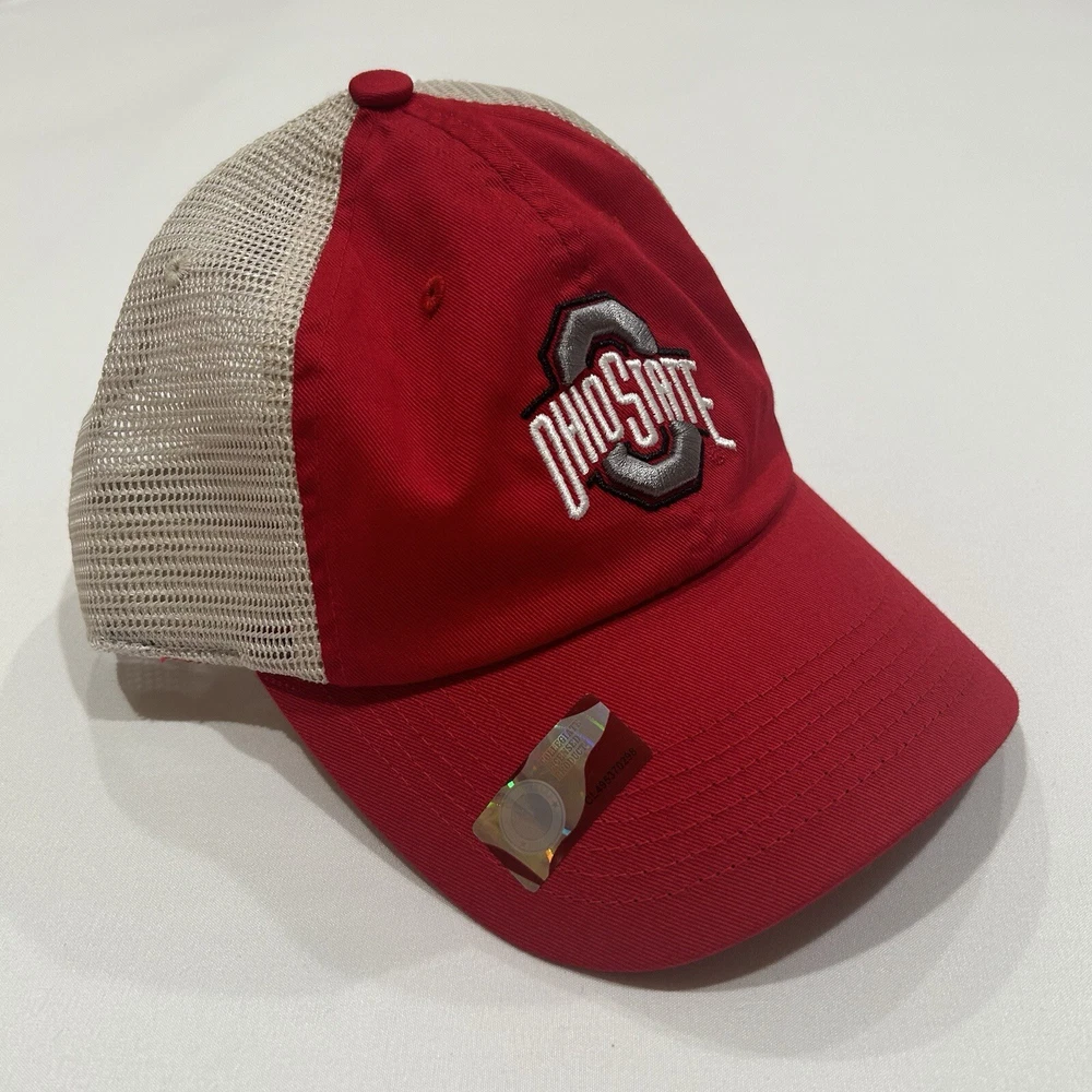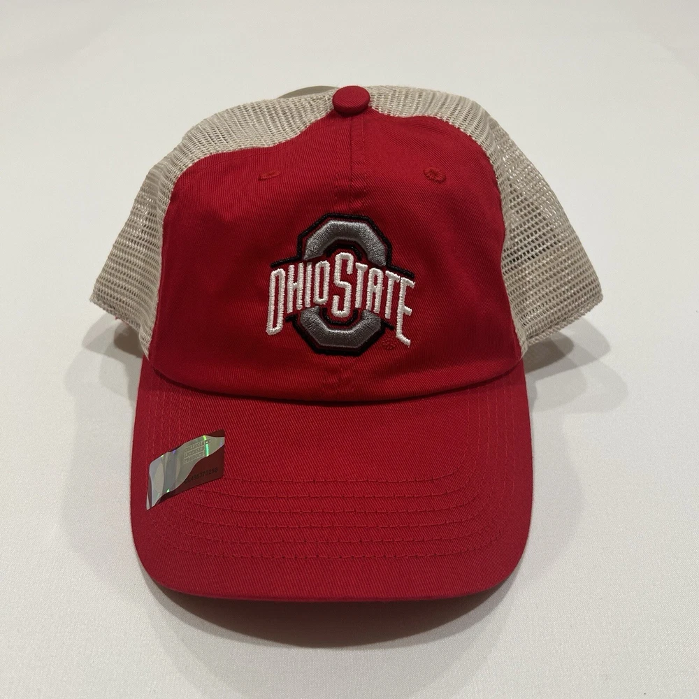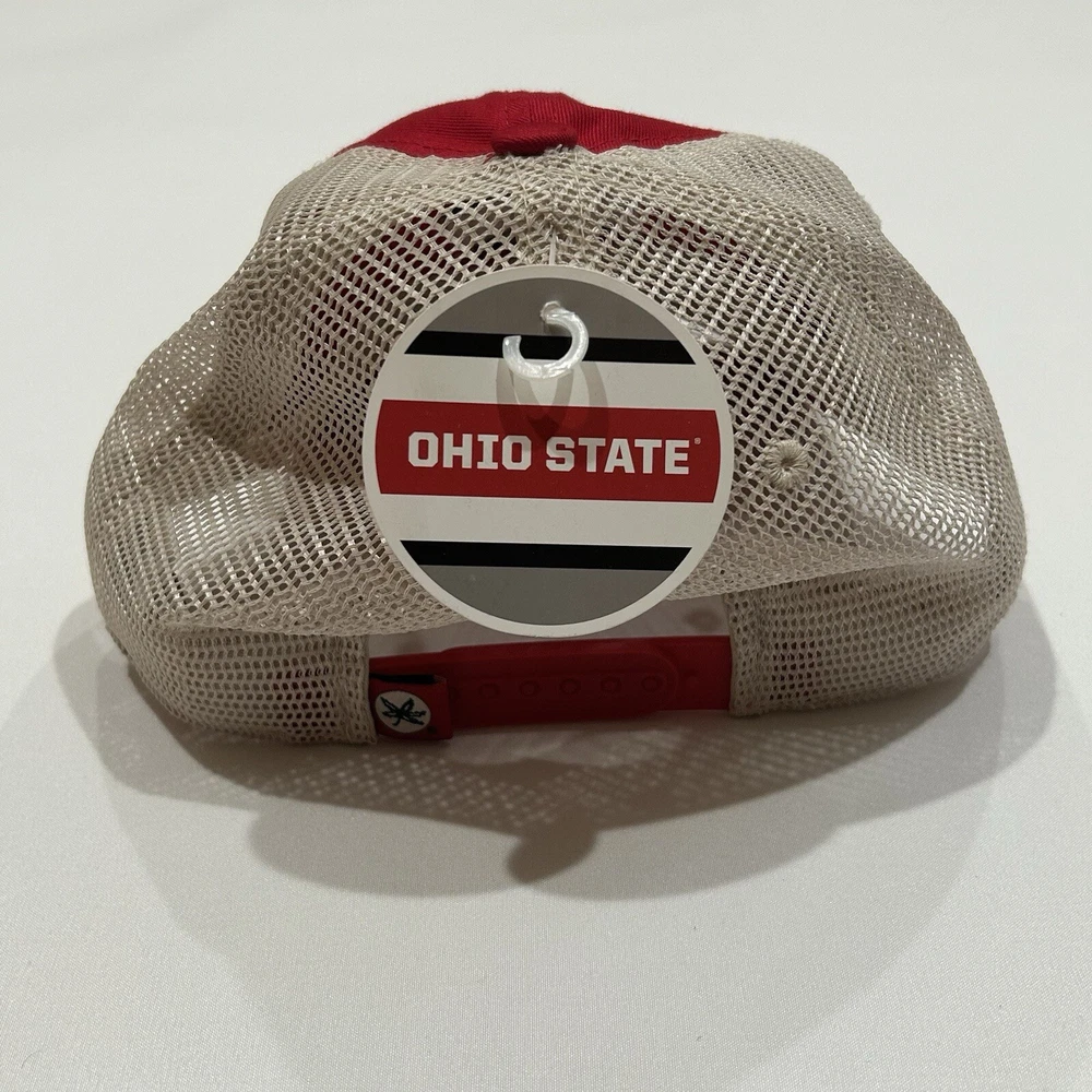 NCAA Ohio State Buckeyes Mesh Adjustable Beige Red Snapback Trucker Hat Cap New