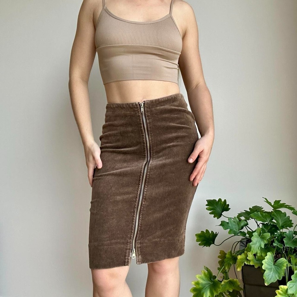 $ 99.51525 AMERICA Snap Ribbed Knit Midi Skirt Orange Size M