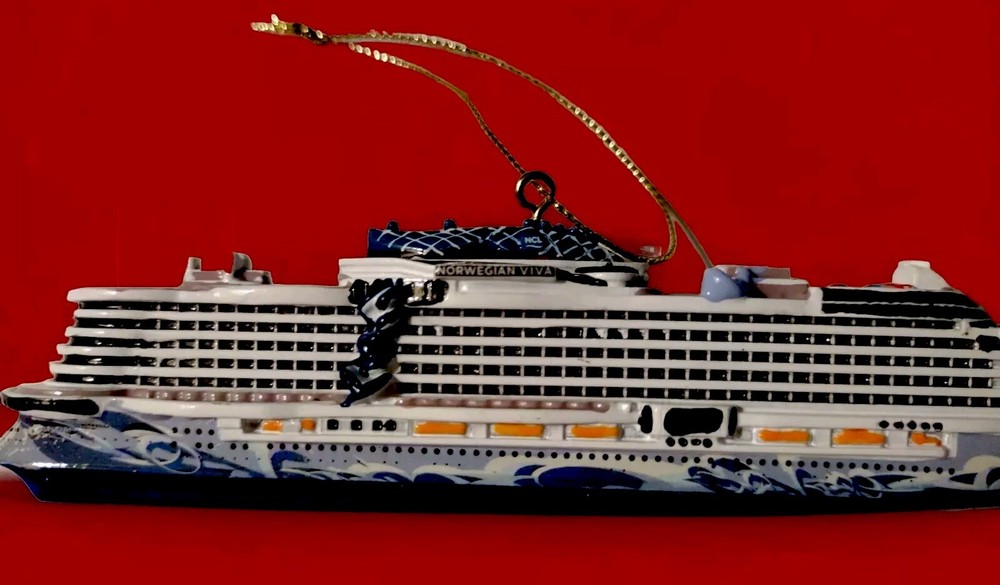 Detailed NCL Norwegian Viva cruise ship ornament featuring lifeboats, deck details, and hanging cord. Ideal for cruise enthusiasts, collectors, or holiday décor This NCL Viva Polyrs Cruise Ship Ornament is a must-have for any collectors of cruise ship memorabilia. It is a perfect Christmas holiday gift for anyone who loves Norwegian Cruise Line or wants to add a unique piece to their collection. Made in China, this ornament is a great addition to any decoration or display 5.25" long x 1.25" tall x 1" wide We use our pictures as part of our condition and description on each item. This item may need to be polished or cleaned as we try to keep everything how we found the item. Combined shipping on orders is always available! *Props are not included, such as jewelry boxes, earring holders, ECT... **Please follow the Generations of Jewels store so that you are notified of new items!!!! ***No returns on International Sales!!! International Shipping will ONLY be through Global Shipping!!!!