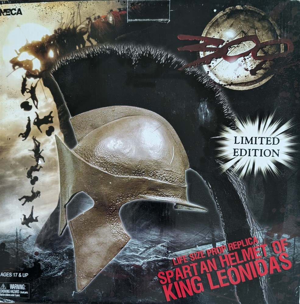 This NECA 300 Movie Spartan Helmet of King Leonidas life size prop replica would be a great addition to any 300 collection. It has been displayed and has some minor damage to the finish and crest. It is to be sold as is.