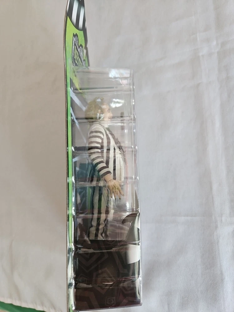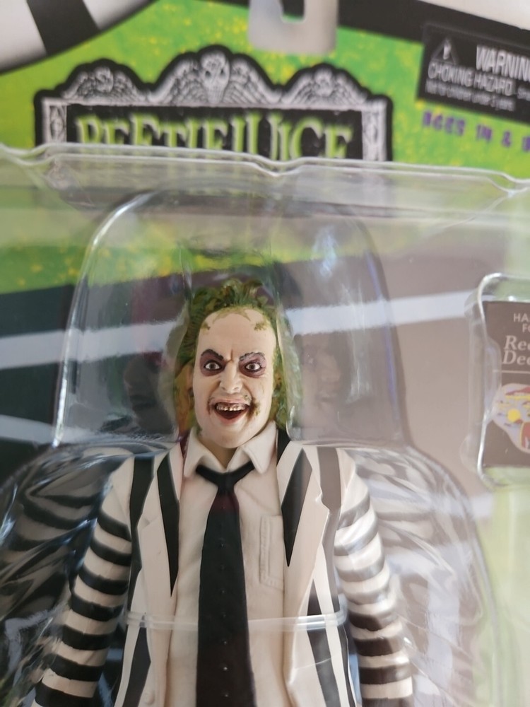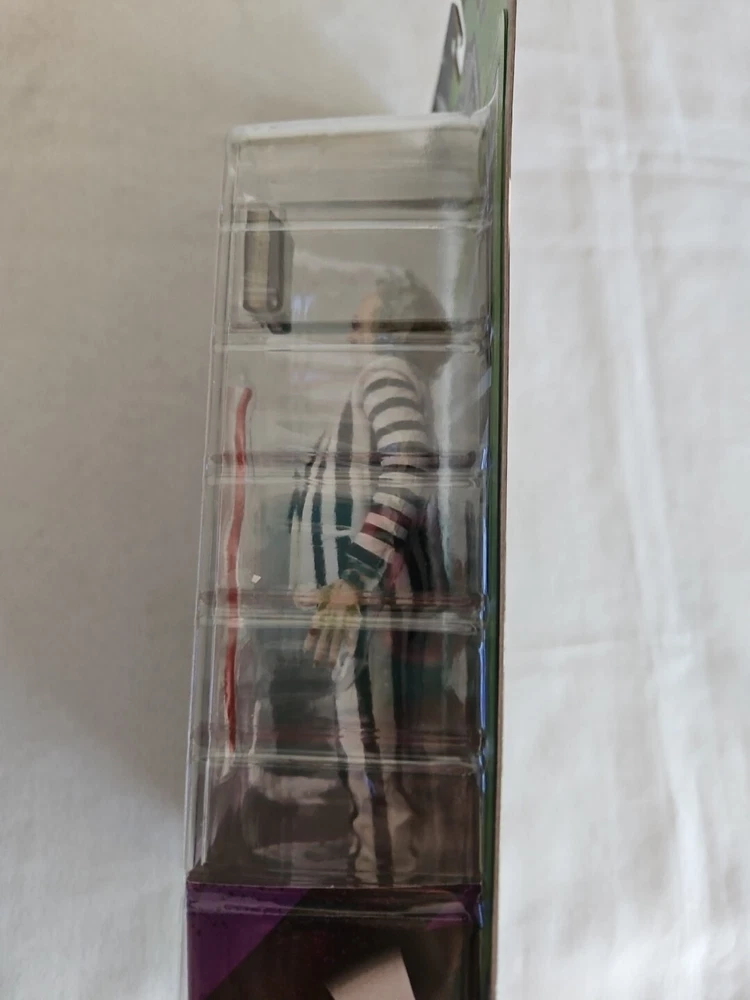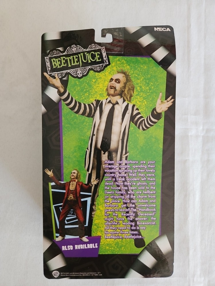 Introducing the NECA Beetlejuice Striped Suit 7" Action Figure, a must-have for fans of the iconic movie character. This exclusive figure comes with a handbook and snake, and is made of high-quality plastic materials. The multicolor design and intricate details make this a standout addition to any collection. The figure features Michael Keaton as the featured person/artist, and is an original, licensed reproduction. At 7 inches tall, this action figure is perfect for display and play. The boxed package includes the snake and handbook, making it a great gift for any Beetlejuice fan. Add this unique piece to your collection today!