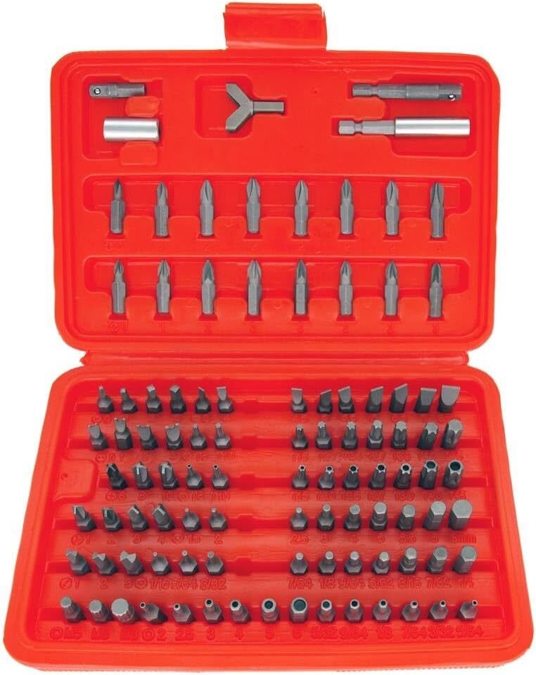 Store New Arrivals Add to Favorite View Feedback Contact NEIKO 10048A 100-Pc Security Bit Set, Cr-V Steel, Tamperproof, 1/4" Adapter Description Item model number 10048A Style Security Power Source Hand Powered Pattern 100 Piece Country of Origin Taiwan Drive System Spanner Batteries Included? No Number of Pieces 100 Batteries Required? No Finish Corrosion Resistant,Chrome Vanadium Material Chrome Vanadium Steel Pattern Name 100 Piece Is Discontinued By Manufacturer No Included Components Bits Item Package Quantity 1 Item Weight 1.59 pounds Part Number FBA_RR-10029A Color Red Finish Type Corrosion Resistant,Chrome Vanadium Compatible Fastener Range 0.25 inches Global Trade Identification Number 00837013100485 Product Dimensions 8 x 6 x 2 inches Size Screwdriver Bit DURABILITY: These bits are made of a high-quality chrome vanadium steel for strong hardness that can withstand more torque, reduce wear-outs, ensure longevity, and durability! PRECISION BITS: Each hex bit set is precisely and automatically machined built to ensure accurate size, chamfered bit ends insert smoothly into fasteners and protect both bits and fasteners from damaged edges and ensure a smooth rotation. DRILL AND SCREWDRIVER BIT SET: Each security hex torx bit set has a sandblasted finish for optimum strength to use with your drill or impact driver. This square bit set includes Nut Drivers, Security Bits, Torx, Slotted, Phillips, Square, Pozi, Hex, Socket, and other specialty bits. ORGANIZED STORAGE: Our small screwdriver bit set includes a sturdy plastic organizing case for secure storage and easy carrying for working on appliances, computers, electronics, home DIY projects and much more. 100 PIECE SET INCLUDES: A blow mold plastic organizing case for secure storage and easy carrying, and many of the most common tamper-proof type security bit sizes, including tri-wing bits, torx star bits, spanner bits, and hex bits. Product Description NEIKO 10048A Security Bit Set contains many of the most common tamperproof security bit sizes, including tri-wing bits, torx bits, spanner bits, and hex bits. Security bits set contains: (1) magnetic bit holder, (1) socket bit holder, (1) 1/4-inch square drive x 1/4-inch hex x 1-inch extension, (1) ¼-inch square drive x 1/4-inch hex x 2-Inch extension, (8) Phillips bits (#0, 1, 2, 3 and 4) (9) Slotted bits (3, 4, 4.5, 5, 5.5, 6, 6.5, 7 and 8mm) (9) Metric Hex bits (1.5, 2, 2.5, 3, 4, 5, 5.5, 6 and 8mm) (6) Metric Hex Tamperproof bits (2, 2.5, 3, 4, 5 and 6mm) (10) SAE Hex bits (1/16, 5/64, 3/32, 7/64, 1/8, 9/64, 5/32, 3/16, 7/32 and ¼-inch) (6) SAE Hex Tamperproof bits (5/64, 3/32, 7/64, 1/8, 9/64 and 5/32-inch) (9) Torx Star bits (T8, 10, 15, 20, 25, 27, 30, 35 and 40) (9) Torx Star Tamperproof bits (T8, 10, 15, 20, 25, 27, 30, 35 and 40) (8) Pozi drive bits (#0, 1, 2, and 3) (4) Square Recess bits (#0, 1, 2 and 3) (4) Spanner bits (#4, 6, 8 and 10) (3) Torque bits (#6, 8 and 10) (4) Tri-Wing bits (#1, 2, 3 and 4) (3) Clutch bits (#1, 2 and 3) (3) Spline bits (M5, 6 and 8) (1) Wing Nut driver Set also includes plastic storage carry case. From the Manufacturer 100-Piece Security Bits Set Security bits set contains many of the most common tamper proof type security bit sizes, including tri-wing bits, torx bits, spanner bits, and hex bits. Security bits set contains: 1 - wing nut driver. 1 - magnetic bit holder. 1 - socket bit holder. 1 - 1/4-Inch sq. x 1/4-Inch hex x 1-Inch extension. 1 - 1/4-Inch sq. x 1/4-Inch hex x 2-Inch extension. 3 - clutch bits (No. 1, 2 and 3). 3 - torque bits (No. 6, 8 and 10). 3 - spline bits (M-5, 6 and 8). 4 - tri-wing bits (No. 1, 2, 3 and 4). 4 - square recess bits (No. 0, 1, 2 and 3). 4 - spanner bits (No. 4, 6, 8 and 10). 6 - metric hex tamper proof bits (2, 2.5, 3, 4, 5 and 6). 6 - SAE hex tamper proof bits (5/64, 3/32, 7/64, 1/8, 9/64 and 5/32). 8 - Phillips bits (0, 1, 2{5} and 3). 8 - pozi drive bits (0, 1, 2{5} and 3). 9 - slotted bits (3, 4, 4.5, 5, 5.5, 6, 6.5, 7 and 8). 9 - metric hex bits (1.5, 2, 2.5, 3, 4, 5, 5.5, 6 and 8). 9 - torx bits (T-8, 10, 15, 20, 25, 27, 30, 35 and 40). 9 - torx tamper proof bits (T-8, 10, 15, 20, 25, 27, 30, 35 and 40). 10 - SAE hex bits (1/16, 5/64, 3/32, 7/64, 1/8, 9/64, 5/32, 3/16, 7/32 and 1/4). Set includes plastic storage / carry case. ABOUT US We offer the best prices around on high quality products. Our E-store includes media such as books, movies, music and games while offering electronics, toys, sporting apparel, clothing, tools, general home, garden items and more. SHIPPING We are always working hard to ensure your package arrives as soon as possible. Please understand that some factors like weather, high postal traffic, and the performance of shipping companies are outside of our control. RETURNS We offer a 30-Day Return Policy on items which you are not completely satisfied with. You have the option for a full-refund or an exchange of the item. PAYMENT We accept PayPal. CONTACT US This page content is yet to come Please ad us to your favorite seller and visit again later Thank You CUSTOMER SATISFACTION We try our very best to make sure every customer is completely satisfied. If there's a problem, message us! We're happy to help.