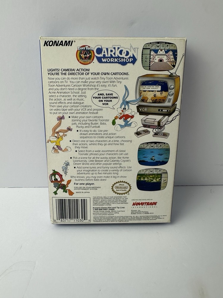 This game comes with the game, box, manual, foam, sleeve and protector. For its age, this isn’t very good condition. This is a NES Tiny Toons Adventures Cartoon Workshop CIB Game Box Foam Manual & Protector Please see all pictures for condition since this is preowned and vintage.