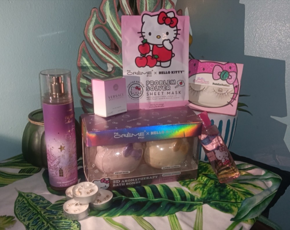NEW 10 Pc The Crème Shop Hello kitty Skincare/Bath&Body Lot. MANY LIMITED EDITION ITEMS IN THIS ONE OF A KIND LOT X1 2 Pc The Crème Shop Hello Kitty bath bomb set X1 FULL SIZE bath & body works strawberry snowflakes body spray X1 the Crème shop Hello kitty problem solver sheet mask X1 maybeluck Hello kitty all in 1 micellar toner X1 versace crystal bright mini dab on perfume X1 Hello sweetheart glue on lashes X4 sea shell embedded scented tealight candles PLEASE NOTE SOME PRODUCTS MAY OR MAY NOT HAVE SEALS. ALL PRODUCTS ARE NEW, UNUSED & AUTHENTIC. TRAVEL/SAMPLE SIZE PRODUCTS DO NOT ALWAYS COME WITH SEALS. I WILL NOT REFUND CUSTOMERS WHO CANNOT READ A DESCRIPTION OR VIEW LISTING PHOTOS BEFORE PURCHASING. PLEASE VIEW PHOTOS, READ DESCRIPTION & FEEL FREE TO MESSAGE WITH ANY QUESTIONS REGARDING THE PRODUCTS.