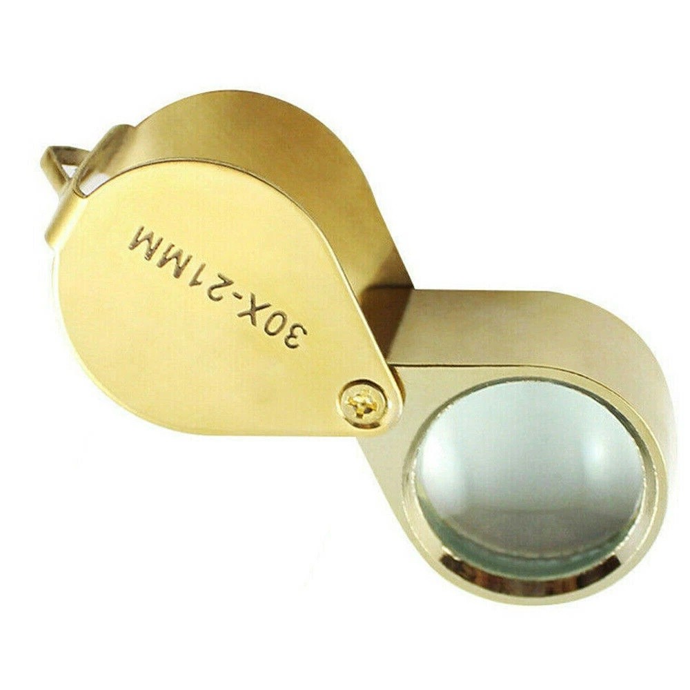 30X Jewelers Loupe Magnifier Jewelry Coin Loop Magnifying Glass Eye Pocket Specifications: Magnification: 30X Lens Diameter: 21mm Package includes: 1xJewelry Magnifier ( 30X ) 1 x Hard Plastic Case NOTE:The actual magnification of the magnifying glass is about 10-15 times