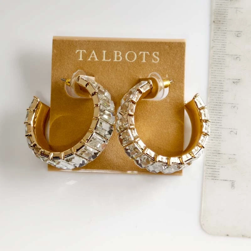 View more great items New 33mm Talbots Gold Tone Glass C Hoop Earrings Gift Fashion Women Party Holiday Jewelry Description: The listing is for new 1pairs talbots fashion gold tone glass c hoop earrings (not including the others for taking picture). Size: about 3.3cmx3.3cm Condition: New with tag The color is gold+clear. Payment: We only accept paypal. It is fast and safe, we strongly recommend the payment method to you. We reserve the right to file Non-Paying Bidder if payment is not received 7 days after the auction ended. Shipping: Orders are usually shipped out within 2 business days (mostly within 24hrs).The EAT is 7-15 business days. We don't ship the PO, FPO, APO address, pls supply a physical address with your phone# or mobile phone#. Country Expecting Arrival Time USA / UK / Australia 7-14 working days Canada 7-21 working days Brazil / South America may take up to 6-8 weeks due to strict Custom Inspection Italy / France / Spain / Germany/ Eastern Europe may take up to 6-8 weeks due to strict Custom Inspection Pls contact us, if you have an urgent shipment. We don't combine the shipment. We only charge shiping fee, don't charge any handling fee. Return: We are in China. Ebay will show the location clearly when you buy. If you need to return any items, it need to return to our China address. We ship the items via the speedPak according to ebay's request. The speedPak will offer its tracking# when we ship the items. But the tracking will be change to USPS tracking# when the items arrive in USA. Pls note it. Brand new If merchandise is defective we will replace a new one for you, no refunds or credits. Defective situation must be reported to seller within 30 days upon receipt. Shipping insurance are not refundable in any case Buyer bears all shipping charges. Warranty: Brand new with no scratches. Perfect gift Professional packing, Good protection Double quality check for each item Ship by air mail without the tracking number Serious full time seller, serve you 24 hour from Monday to Saturday No Import Tax or Sales Tax, Unbelievable Low Price Reply your questions in 24 hours ATTENTION: Please read the item descriptions and shipping cost before placing a bid. Track Page Views With Auctiva's FREE Counter