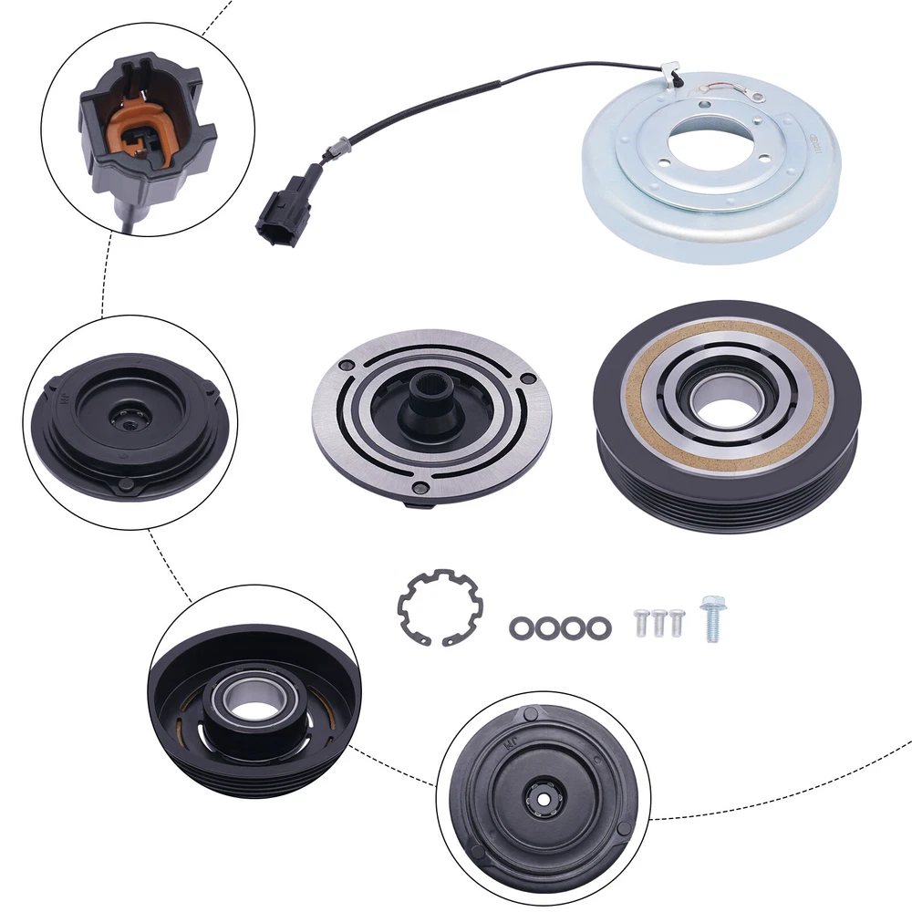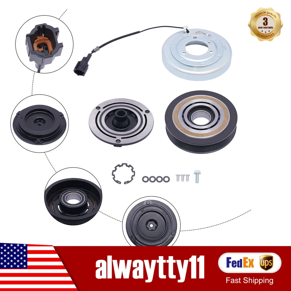 NEW A/C AC Compressor Clutch Kit For Nissan Altima 2002-2006 Maxima 2003-07 3.5L Applications: For For Nissan Altima 2002-2006 3.5L For For Nissan Maxima 2004-2007 3.5L Descriptions: The three main parts of the compressor clutch assembly are the coil magnet, the pulley, and the clutch plate. The clutch drive plate is splined to the input shaft of the compressor. For Nissan Altima 02-06 For Maxima 03-07 3.5L AC A/C Compressor Clutch Kits Applications: For For Nissan Altima 2002-2006 3.5L For For Nissan Maxima 2004-2007 3.5L Descriptions: The three main parts of the compressor clutch assembly are the coil magnet, the pulley, and the clutch plate. The clutch drive plate is splined to the input shaft of the compressor. The compressor clutch is a large electromagnet that, when energized, draws the clutch plate into the clutch pulley. The magnetic field holds the clutch plate tightly against the clutch pulley as long as current is supplied to it. This in turn engages the drive pulley to the compressor input shaft, causing the shaft to spin. When the compressor clutch is not engaged, the input shaft of the compressor does not spin and the drive pulley freewheels on a sealed bearing assembly. Package Included: 1 x Pulley With Bearing 1 x Front Plate 1 x Electromagnetic Coil Item Specifics Brand : autodayplus Manufacturer Part Number : ADP10428DA162S Warranty : 1 Year Interchange Part Number : CO 10874JC,92600CA02B, 92600CA03B, 10346160 Other Part Number : 67438, 68438, 5511696, 140142C, 10000657, 700710 Superseded Part Number : 926008J00B, 926008J120, 92600CA020, 92600CA02A Reference OE Part Number : 471-5008, CO 10874Z, CO 10874V,2678, 035095, 638783 Fitment Type : Direct Replacement Type : AC Compressor Clutch Pulley Grooves : 6 Grooves ( if you want cancel orders or change address pls contact us within 6 hours after payment,or we are not responsible for shipping a replacement. ) 1. Orders processed within 24-48 hours of payment verification. 2. We only ship to confirmed PAYPAL addresses. Your PAYPAL address must match your Shipping address. 3. The images shown are not the actual item and are for your reference only. 4. Fast shipping:All our packages use USPS First Class Package Service 5. If you have not received your shipment within 15 days from payment , please contact us. We will track the shipment and get back to you as soon as possible with a reply. Our goal is customer satisfaction!lll. We maintain high standards of excellence (five stars review)and strive for 100% customer satisfaction! FEEDBACK IS VERY IMPORTANT TO US. We request that you contact us immediately BEFORE you give us neutral or negative feedback, so that we can satisfactorily address your concerns. 2. It is impossible to address issues if we do not know about them!1. We accept payment via PAYPAL only. 2. Payment must be made within 4 days of auction closing. 3. Total amount due includes the final auction price plus S&H(Shipping and Handling). 4. S&H will be determined based upon the SHIP TO address.PLEASE NOTE: S&H dons not include duties,local taxes.1. We accept payment via PAYPAL only. 2. Payment must be made within 4 days of auction closing. 3. Total amount due includes the final auction price plus S&H(Shipping and Handling). 4. S&H will be determined based upon the SHIP TO address.PLEASE NOTE: S&H dons not include duties,local taxes.1. We accept payment via PAYPAL only. 2. Payment must be made within 4 days of auction closing. 3. Total amount due includes the final auction price plus S&H(Shipping and Handling). 4. S&H will be determined based upon the SHIP TO address.PLEASE NOTE: S&H dons not include duties,local taxes. WARNING: Cancer and Reproductive Harm - www.P65Warnings.ca.gov. 1. Orders processed within 24 hours of payment verification.( if you want cancel orders or change address pls contact us within 6 hours after payment,or we are not responsible for shipping a replacement. ) 2. We only ship to confirmed PAYPAL addresses. Your PAYPAL address must match your Shipping address. 3. The images shown are not the actual item and are for your reference only. 4. Fast shipping:All our packages use USPS First Class/UPS/Fedex... Package Service 5. If you have not received your shipment within 15 days from payment , please contact us. We will track the shipment and get back to you as soon as possible with a reply. Our goal is customer satisfaction! 1. You have 30 days to contact us and 10 days to return it from the date it was received. If this item is in your possession more than 7 days, it is considered used and we will not issue you a refund or replacement. There are NO EXCEPTIONS! 2. All returned items must be in the original packaging and you must provide us with the shipping tracking number, specific reason for the return, and item custom lable. 3. We will refund your full winning bid amount, upon receipt of the item in its original condition and packaging with all components and accessories included, AFTER both Buyer and Seller cancel the transaction from eBay. OR, you may choose to have a replacement. 4. Return shipping is to be paid by the Buyer . 1. We maintain high standards of excellence (five stars review)and strive for 100% customer satisfaction! FEEDBACK IS VERY IMPORTANT TO US. We request that you contact us immediately BEFORE you give us neutral or negative feedback, so that we can satisfactorily address your concerns. 2. It is impossible to address issues if we do not know about them! 1.We only accept PayPal. 2.Please do not use the PayPal note field to indicate us to ship to other address. The note there will NOT be read. If you want to change the shipping address, please contact us by eBay messages. 3. ( if you want cancel orders or change address pls contact us within 6 hours after payment,or we are not responsible for shipping a replacement. ) 4.Payment must be received within 10 days as auction ended or order might be delayed. Key Features Build to Last: Steel, copper, and electroplating process mak