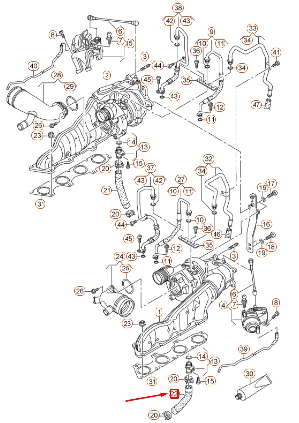 NEW AUDI A6 C7 LEFT SIDE TURBOCHARGER OIL RETURN HOSE 079145743A ORIGINAL