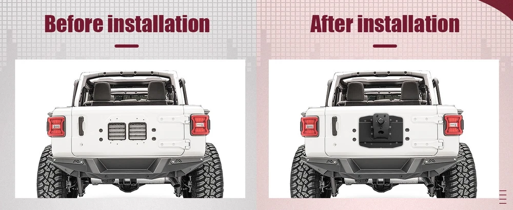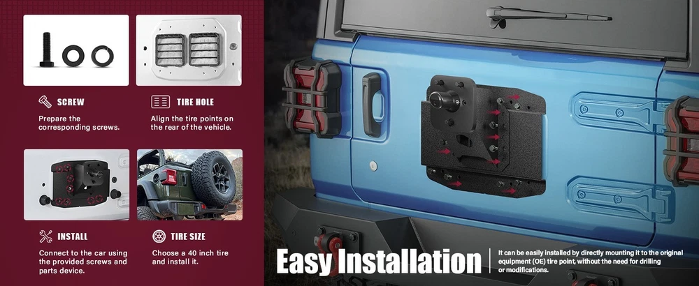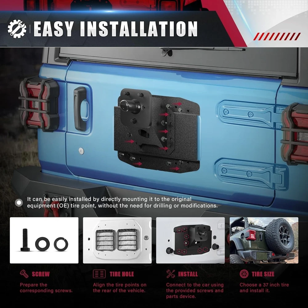 DESCRIPTION PAYMENT SHIPPING RETURN POLICY CONTACT US 2777 LOOK AT THE PICTURES TO SEE IF YOUR MODEL IS LISTE D !! BRAND NEW ITEM GUARANTEED THIS ITEM IS UNUSED, FACTORY BOXED. An item in excellent, new condition with no wear, the original packaging. The item includes original accessories IT HAS NO DAMAGE AND WORKS JUST LIKE a BIG BOX STORE ITEM! YOU GET A NEW ITEM AND WE PASS THE SAVINGS ON TO YOU!! REALDEALSDUDE SAYS 100% SATISFACTION GUARANTEED WITH THIS TOP PRODUCT! 30 DAY FREE RETURNS!!! FAST SHIPPER! WE WILL SOLVE ANY PROBLEMS CONTACT US ASAP VIA EBAY! YOU DESERVE THE BEST!! YOU CAN GET INFERIOR BRANDS BUT WHY?? THE BEST FITTING BRAND WITH THE HIGHEST QUALITY TO LAST DONT SETTLE FOR LESS! MAY QUALIFY FOR EBAY ALLSTATE PROTECTION PLAN Wrangler JL Oversize Spare Tire Mount Carrier up to 40 inches Compatible with 2018-2026 Jeep Wrangler JL JLU with a Rear-view Camera Slot (Camera not Included) Heavy Duty Rear Wheel Bracket 【Fitment】Designed for Jeep owners, this spare tire mount carrier fits 2018-2026 Jeep Wrangler JL and JLU Unlimited models (including 4XE). Please verify compatibility with your vehicle before purchasing. 【Superior Quality】Made from sturdy steel sheet, EYOUHZ Rear Wheel Bracket is built for lasting performance. The durable textured black powder coat finish protects against scratches, rust, and corrosion. 【Unique Design】EYOUHZ Back Tire Rack extension bracket increases the distance between the vehicle and the wheel mount, accommodating tires up to 40 inches. It includes a slot for a rear-view camera to aid in reverse maneuvers (camera not included) and raises the gap between the bumper and tire. 【Easy to Install】The package contains the spare tire carrier body, base plate, screw kit, and installation manual. It can be easily mounted to the original equipment (OE) tire point with no drilling or modifications required. 【Full After-Sales Support】This product comes with a 2-year factory warranty and lifetime customer service. We provide detailed installation instructions and are here to help with any questions or concerns. Don’t hesitate to contact us for assistance. Item Specifics Country/Region of Manufacture : United States Payment Payment This is the payment method we can accept: eBay Payments You can check out and pay immediately after the auction ends. Shipping Shipping 1. USUALLY GROUND UNLESS YOU PAY FOR EXPEDITED. We will ship to your eBay address. Please make sure your eBay address is correct before you pay. 2. We will usually ship out your order within 1 business day after receiving your verified payment (Excluding Weekends and Public Holidays)! Returns Returns 1.If you are not satisfied with our products. Please kindly contact us before you open the return request. We provide 30 days Money Back or Exchange Warranty. 2.Please Kindly contact us for the RMA No. and address before returning the item back. Contact Us Contact Us 1. Please contact us if you are not satisfied with the item after receive it. Just contact us using the " Ask the seller a question" link on eBay. 2.All replies will be sent to your email, if you don't get response within 1-2 business days, please check your My messages' in case your email provider has an overly-aggressive spam filter blocking eBay's emails. Please email us AGAIN.Thanks All rights reserved. Shop Category Store Home Hot Item New List Item Samsung 1.7cu ft Over-the-Range Microwave Fingerprint Resistant Stainless Steel USD 199.00 GE JES1657SMSS Microwave Oven 1.6CUFT Stainless Steel COUNTERTOP VERY NICE USD 99.00 Hotpoint - 1.6 Cu. Ft. Over-the-Range Microwave Convenience Control NEW OPEN BOX USD 199.00 BRAND NEW OPEN BOX ! LG Over-the-Range Microwave Oven 1.8 Cu Ft USD 229.00 LG 30" Over the Range 1000W Microwave Oven with 1.7 Cu. Ft. Capacity - LMV1764ST USD 199.00 Help & Info Payment Policy Shipping Policy Return Policy FAQ About Us
