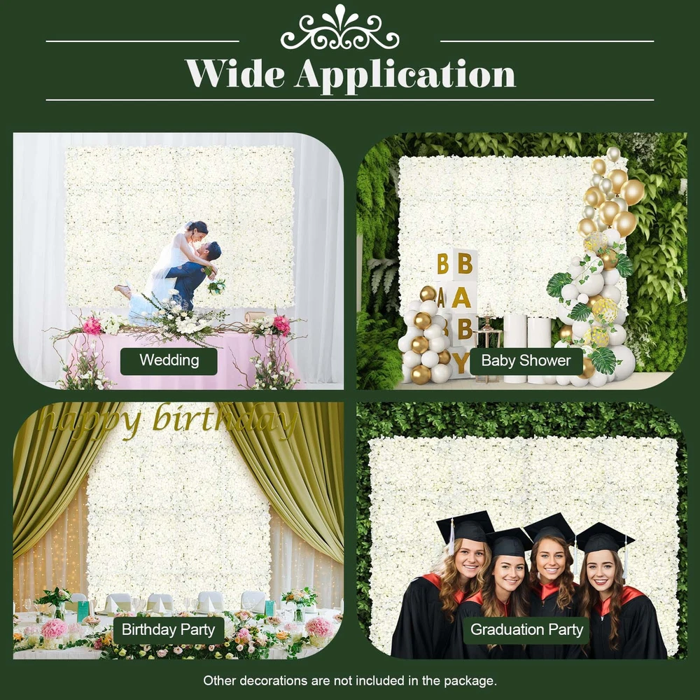 Description Flower decoration has always been a preference for many people, but the price and maintenance of real flowers can be very annoying. This simulated flower wall decoration is a good choice! It is a colorful, realistic form, suitable for a variety of decorative occasions. It can be used for a long time without extra care. You can use other kinds of flowers, foliage, and some small accessories, such as small bulbs, bells, fruits, and fairy lights to make more decorating possibilities. Key Features Realistic Shape: The pure white flowers naturally cluster together, and the embossing, injection molding, and screen printing processes give them the unique beauty of flowers and make it look more realistic. High-Quality Material: These flower backdrops are attached by plastic backplane NEW Artificial Flower Wall Panel White 20pcs For Filming Wedding Party Backdrop Description 🧡💛❤️ Description Flower decoration has always been a preference for many people, but the price and maintenance of real flowers can be very annoying. This simulated flower wall decoration is a good choice! It is a colorful, realistic form, suitable for a variety of decorative occasions. It can be used for a long time without extra care. You can use other kinds of flowers, foliage, and some small accessories, such as small bulbs, bells, fruits, and fairy lights to make more decorating possibilities. 🧡💛❤️ Key Features Realistic Shape: The pure white flowers naturally cluster together, and the embossing, injection molding, and screen printing processes give them the unique beauty of flowers and make it look more realistic. High-Quality Material: These flower backdrops are attached by plastic backplanes, which are more durable and easy to clean. With the silk material, it is resistant to wind and sunlight and can be used outdoors for a long time. Easy to Assemble: The edge of the plastic backplane behind each artificial flower wall is equipped with plastic holes and corresponding plastic nails. You just need to insert the plastic nails into the plastic holes by hand, and put the flower wall together! Unleash Your Imagination: For DIY lovers, it can provide you with more creativity to make wonderful and unique backgrounds. Decorate your party with colored lights, balloons, and other decorations(not included)! Wonderful Symbolism: The flowers represent blessings, romance, harmony, and optimism, making life full of love and making your party unique and meaningful! 20-piece Set: A total of 20 flower walls are included to fully satisfy your needs. The large size (23.6*15.74in Each) can create a luxurious and beautiful background for your various parties and gatherings. Artificial Flowers: It is reusable for you to save costs. Also, it does not require maintenance to save your effort, and it is great for people who are allergic to flowers. Easy to Clean: Plastic and silk are not easy to get dirty. You can put them away after use to prevent dusting. Even if they get dirty, you can simply wipe them gently with a soft, dry cloth or fabric duster to restore cleanliness. Wide Applicability: This flower wall can be installed on concrete walls, wooden walls, or plasterboard by using non-marking nails and hammers (not included) to decorate the wall without causing damage to it. It can also be installed on glass walls and marble walls by using sticky hooks (not included). Its good applicability can meet your various needs. 🧡💛❤️ Details Fine Grid: The back is designed with plastic grids that are hard-wearing and easy to bend and stretch while being easy to hang and fix. Reinforced Flower Heads: The flower head has been specially treated with extra glue to make it stronger and less likely to fall off even when placed outdoors. 🧡💛❤️ Application It is ideal for bridal showers, baby showers, and any decoration of parties including birthday parties, graduation parties, proposals, engagement parties, weddings, anniversary parties, opening ceremonies, grand openings, and receptions. It also can be used both indoors and outdoors. 🧡💛❤️ Specifications Material: Silk, Plastic Shape: Rectangular Color: White Style: Elegant Assembly Required: Yes Type: Simulation Flowers Indoor/Outdoor Usage: Outdoor, Indoor Usage: Wedding, Outdoor, and Photography Props Craft: Embossing, Injection Molding, Screen Printing Number of Items: 20 Gross Weight: 6.8kg/15lbs Net Weight: 5.7kg/12.56lbs Single Product Size: 60*40cm/23.6*15.74in Package Size: 63*43*30cm/24.8*17*11.8in 🧡💛❤️ Package Included 20*Flower Walls 🧡💛❤️ Notes Due to transportation reasons, it is normal for the flowers to deform. Please use a hair dryer to blow with hot air. If cleaning is required, please gently wipe with a dry towel. Please try to avoid prolonged direct sunlight and stay away from ignition sources. Please note that plastic products may have a slight odor that will dissipate after ventilation. Please allow the slight color difference caused by the shooting light and 1-3cm error due to manual measurement, and make sure you do not mind before you order. 🧡💛❤️ Welcome to our store~ Have a nice day~ Payment Delivery details Terms of sales About us Contact us Payment We accept ebay payment 。 Fees such as import duties, taxes are not included in the item price or shipping costs. These charges are the buyer's responsibility. Delivery details Shipping: 2-9 working days to: USA Terms of sales We maintain high standards of excellence and strive for hundred percent customer satisfaction. Feedback is very important to us. We hope that you contact us immediately before you give neutral or negative feedback, so that we can address your concerns. It is impossible to address issues if we do not know about them! About us Your satis faction is our ultimate goal. We work hard to earn your trust and future business. Our certified technicians have tested each item before shipping. The unit comes with 1 year limited warranty 