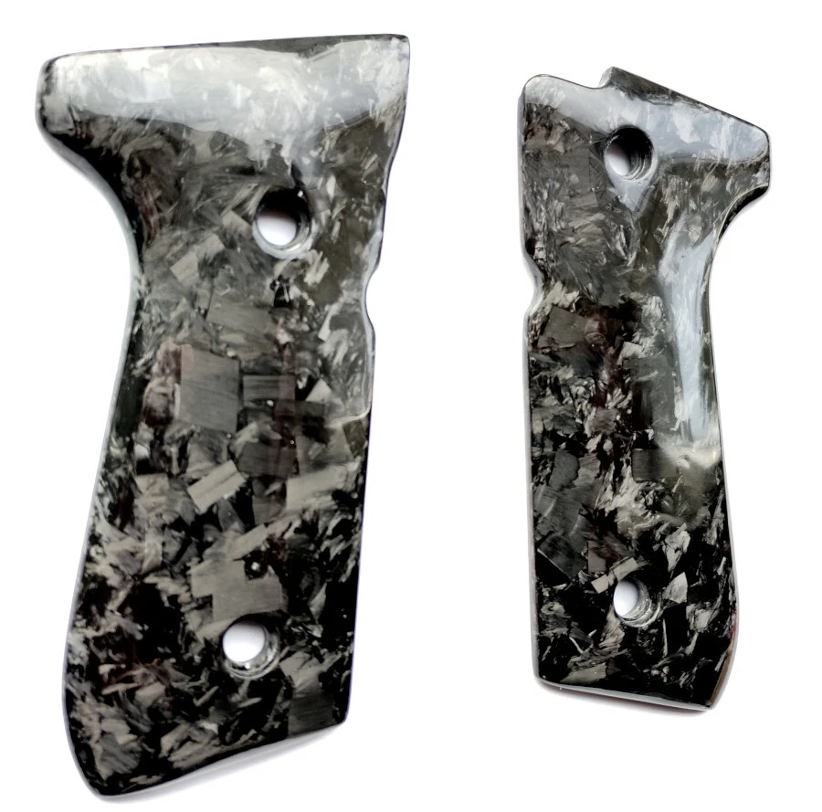 Does not come with any hardware! Only grips are included. NEW Beretta 92FS Forged Carbon Fiber Grips Made of 100% solid forged carbon fiber with a gloss finish These forged carbon fiber grips are very strong and durable, will not warp, crack or dry out like other type of grip materials. These grips fit all full size Beretta 92FS 92F 92A1 92 models