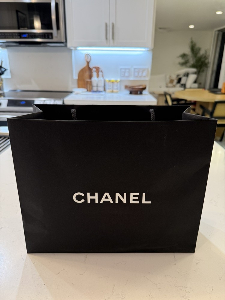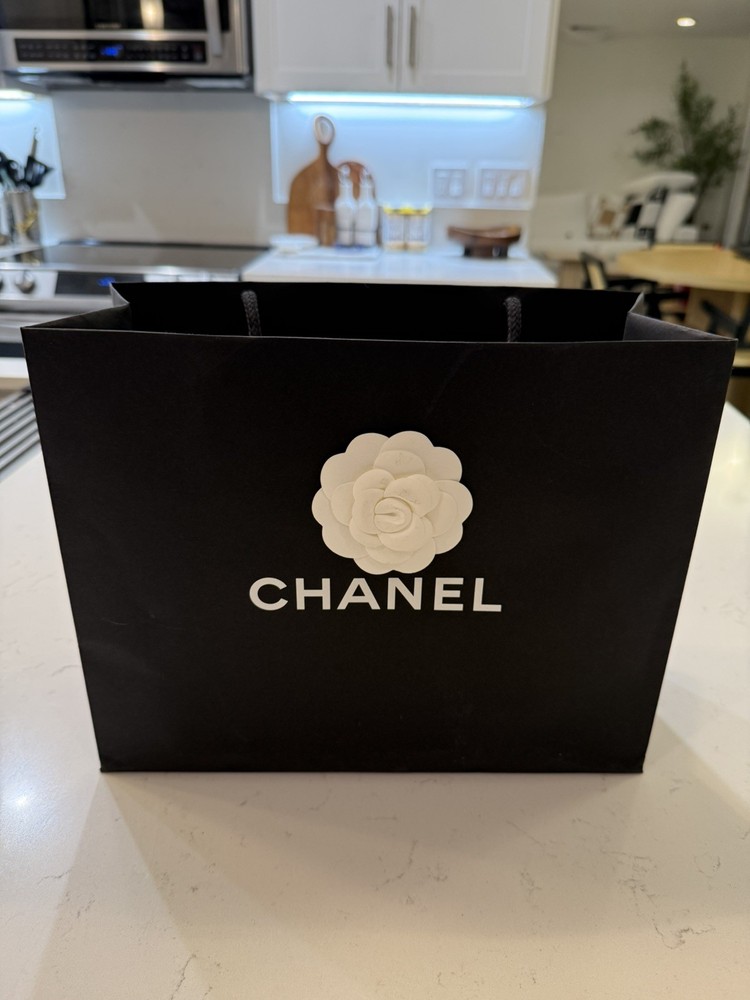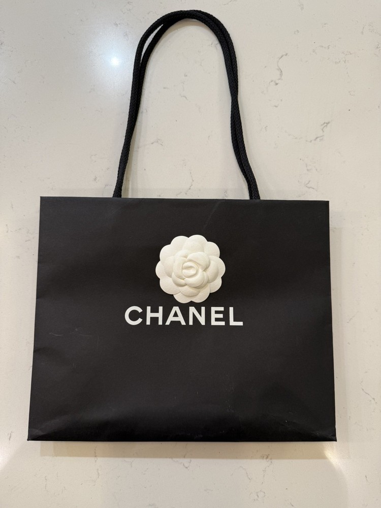 NEW Chanel Gift Bag Classic Black Empty Paper Bag White Camilia Shopping. Condition is New. Shipped with USPS Ground Advantage.