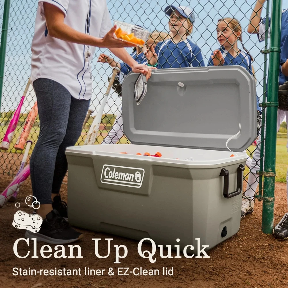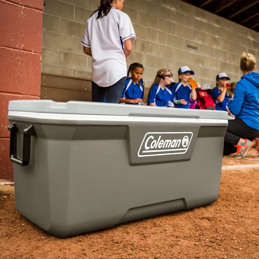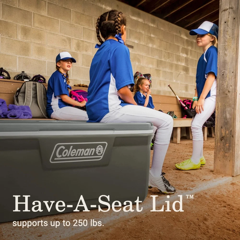 Icy beverages and shared meals fuel the best times outdoors, and the 316 Series Cooler is the right choice for the job. This large 120-quart chest holds up to 102 cans and 60 lbs. of ice, enough to refresh the entire gang. Looking for multiday ice retention? TempLock FX insulation in the lid and body has you covered. And, the 316 Series is made with 15% less plastic than comparable Coleman coolers. Built to last, the Have-A-Seat Lid supports up to 250 lbs., has four cup holders, and is recessed for easy access. Want more? The tethered drainplug resists leaks, the liner resists stains, and our EZ-Clean top makes cleanup simple. Modern color combo has updated appeal, and there's even a built-in ruler for measuring the catch of the day. From campsite to worksite, beach to bonfire, soccer field to stadium–Coleman helps you keep your cool. Coleman Cooler, 316 Series, 120-Quart Chest KEEP IT COLD: Fully insulated lid and body with TempLock FX for multiday ice retention UPGRADE: The 316 Series is made with 15% less plastic than comparable Coleman coolers LOSE THE LEAKS: Tethered drainplug resists leaks and won't get lost GRAB & GO: Easy-grip handles are now more durable than ever ENJOY A BIG SIP: Four cup holders prevent spills; each holds up to a 30 oz. tumbler TAKE A LOAD OFF: Sturdy Have-A-Seat Lid supports up to 250 lbs. CLEAN UP QUICK: Stain-resistant liner & the EZ-Clean lid make cleanup a breeze GO BIG: 120-quart size holds up to 102 cans and 60 lbs. of ice