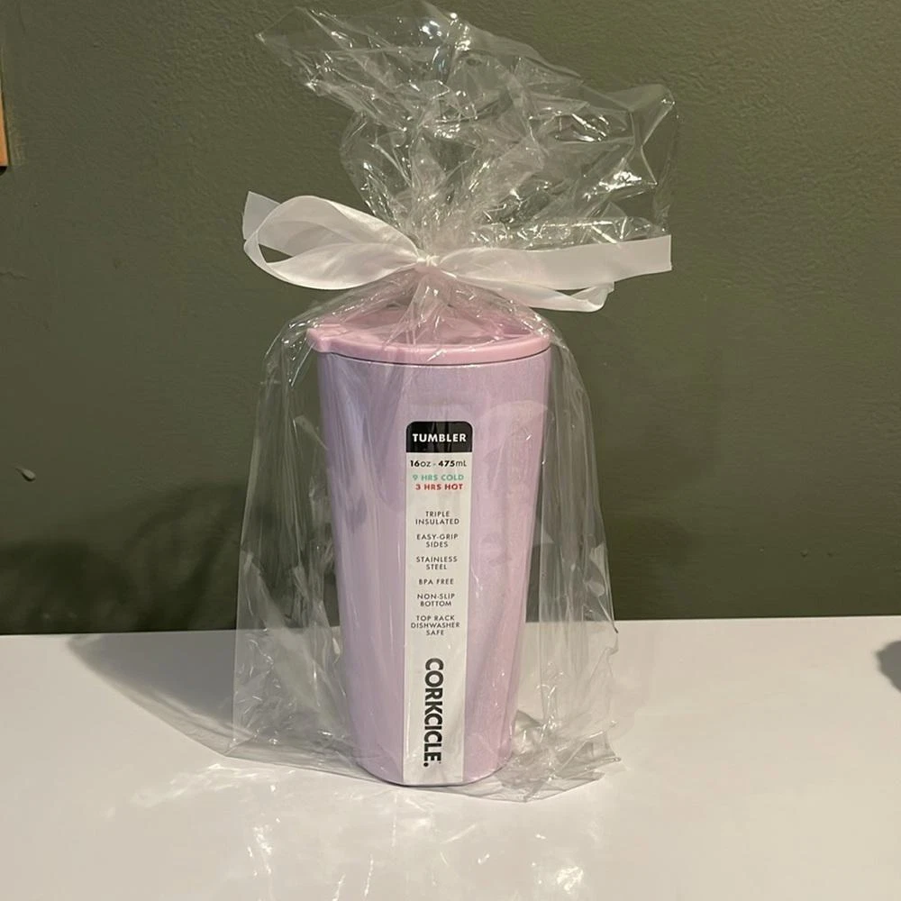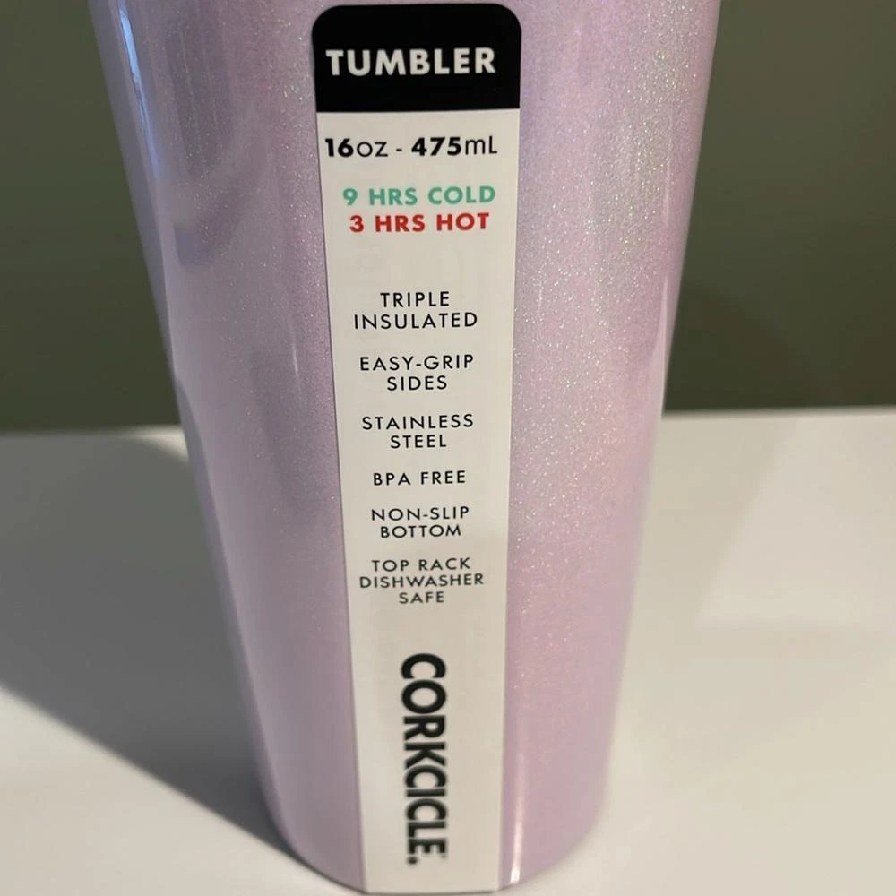 This stylish Corkcicle 16oz tumbler in a gorgeous sparkly lavender finish is both functional and fashionable. Made from durable stainless steel, it’s triple-insulated to keep your beverages cold for up to 9 hours or hot for 3 hours. The easy-grip sides make it comfortable to hold, while the non-slip bottom ensures stability. Perfect for on-the-go or at home, this tumbler is also BPA-free and dishwasher safe (top rack only). Ideal for those who value style and practicality in their drinkware. NEW Corkcicle 16oz triple insulated tumbler sparkling lavender pink color nwt Triple insulated Easy grip sides Stainless steel Bpa free Non slip bottom Top rack dishwasher safe