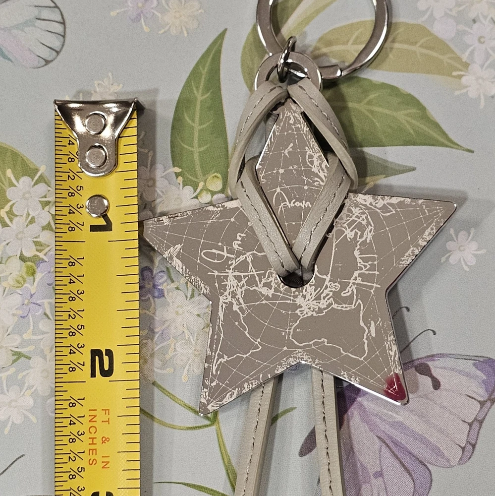 Bring a touch of celestial luxury to your day carry with this Dior Star Keychain. Crafted from smooth gray leather with a silver-tone metal star engraved in a world map design, this elegant piece showcases a signature blend of craftsmanship and sophistication. The embossed Dior logo along the strap adds a refined finishing touch. Perfect for elevating your keys, tote, or handbag, this collectible accessory comes brand new in its original box, a timeless gift for yourself or someone special. Dior is a name synonymous with French elegance and artistry, known for merging classic design with modern allure. Their accessories embody refined taste, making even small details feel extraordinary. ✨ Don’t wait... this stunning piece won’t stay around for long. Snag it before it’s gone!