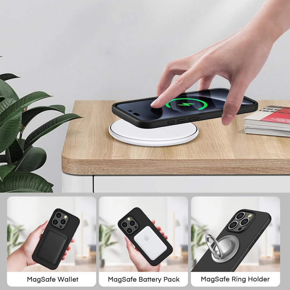 NEW For iPhone15 Pro Max 15Plus 15 Pro Original Silicone Case with MagSafe 2023 Product Description Apple Silicone Case with MagSafe for iPhone 15 series The Silicone Case with MagSafe is a delightful way to protect your iPhone.The silky, soft-touch finish of the silicone exterior feels great in your hand.And on the inside, there’s a soft microfibre lining for even more protection. Slim, convenient, multi-purpose With built-in magnets that align perfectly with iPhone 15 series, the case offers a magical attach and detach experience, every time.The perfectly aligned magnets make wireless charging faster and easier than ever before.And when it’s time to charge, just leave the case on your iPhone and snap on your MagSafe charger, or set it on your Qi-certified charger. What’s in the Box iPhone Silicone Case * 1 Note: Since the product is processed by computer after shooting, the actual color of the product may be different from the picture, please pay attention!!!