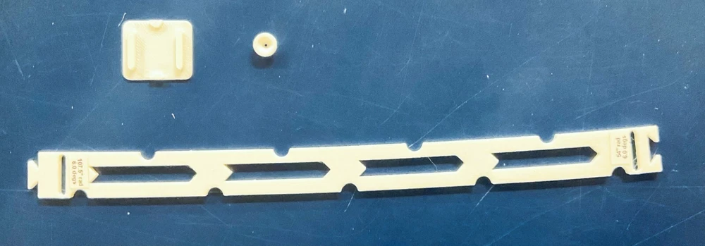 HO Track Placement Snap Template Sections for Laying HO Scale Track NOTE: If purchasing more than one section select "Add to cart" and when all sections have been selected, go to your cart and select "Request combined shipping" for an invoice with combined shipping cost. Request combined shipping - ke "to enable combined shipping costs. These Snap Templates help make the process of laying HO Scale track simpler and easier. They are designed to help ensure your track is laid smoothly and accurately. Whether you are a seasoned model train enthusiast or just starting out, these templates help facilitate placement of HO Scale track at an affordable price. Designed with attention to detail and precision, the track placement Snap Templates snap together by way of a unique dovetail joint locked in place with a connector, making the intended relationship between template sections more accurate to specific curvatures and angles. One connector is included with each Snap Template section. A large selection of curvatures are available including elliptical transition sections that enable smooth transition from a straight section of track to a specific radius of curvature circular arc. This smooth transition provides for a more prototypical scene as a locomotive enters the curve. Each Snap Template section also features center line slots for placing nails into ties, or, for scribing a track center line using a scribing stencil. One scribing stencil is included with each Snap Template section. Snap Template sections are also available with or without openings for hand laying rail spikes. No guarantees or warranties expressed or implied. Please review photos before purchasing. No returns or refunds. Contact the Seller if you have any questions or would like to see other specific curvatures offered. Thanks for looking!