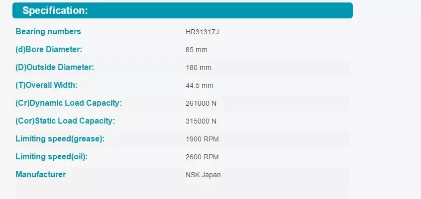 $ 286.86NEW HR31317J Tapered Roller Bearing 85x180x44.5mm 1PC