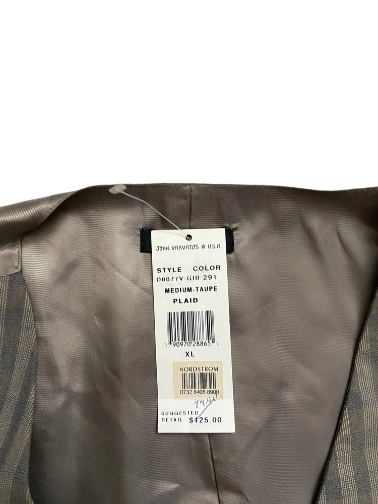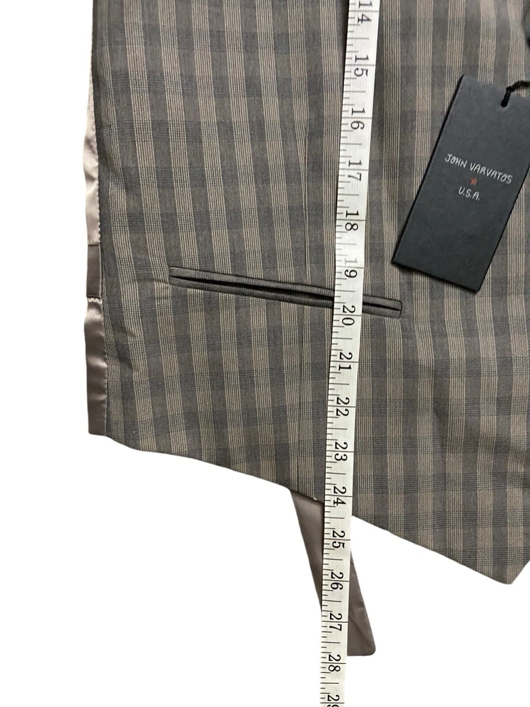 NEW John Varvatos Gibson Taupe Dress Vest Mens XL Brown Plaid Wool Button Front MEASUREMENTS Size tag is XL, however measurements look small for a XL size. For measurements, please see pictures above to ensure adequate fit. ITEM DESCRIPTION New with tags. Please review photos for details of wear/condition. I will ship your item upon payment within the next business day (Mon - Fri) excluding holidays and weekends. If you have any questions, please send me a message through eBay and will respond as soon as possible. Returns are accepted within a 60-day time window. Returned items must be in the same condition as it was shipped/received in including tags if applicable. Thank You for Stopping By! P.S Check my store for other clothing items. New items added daily waiting for a new home!