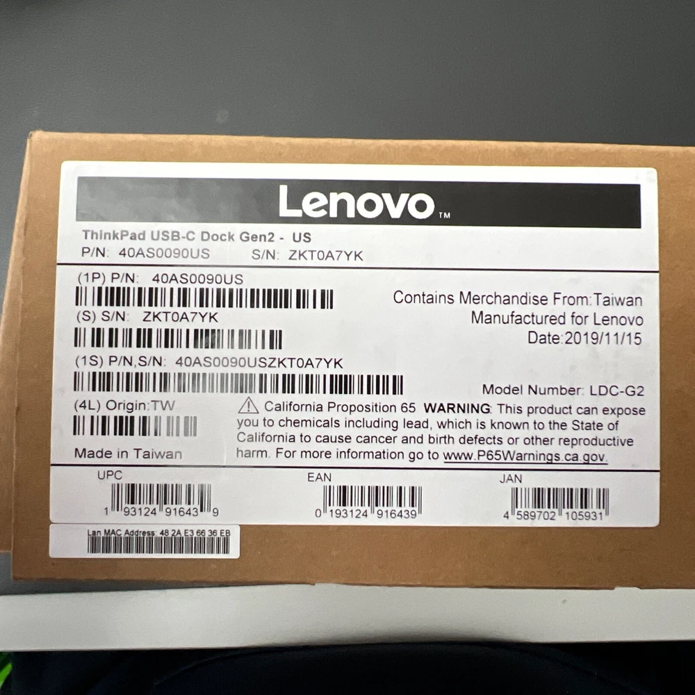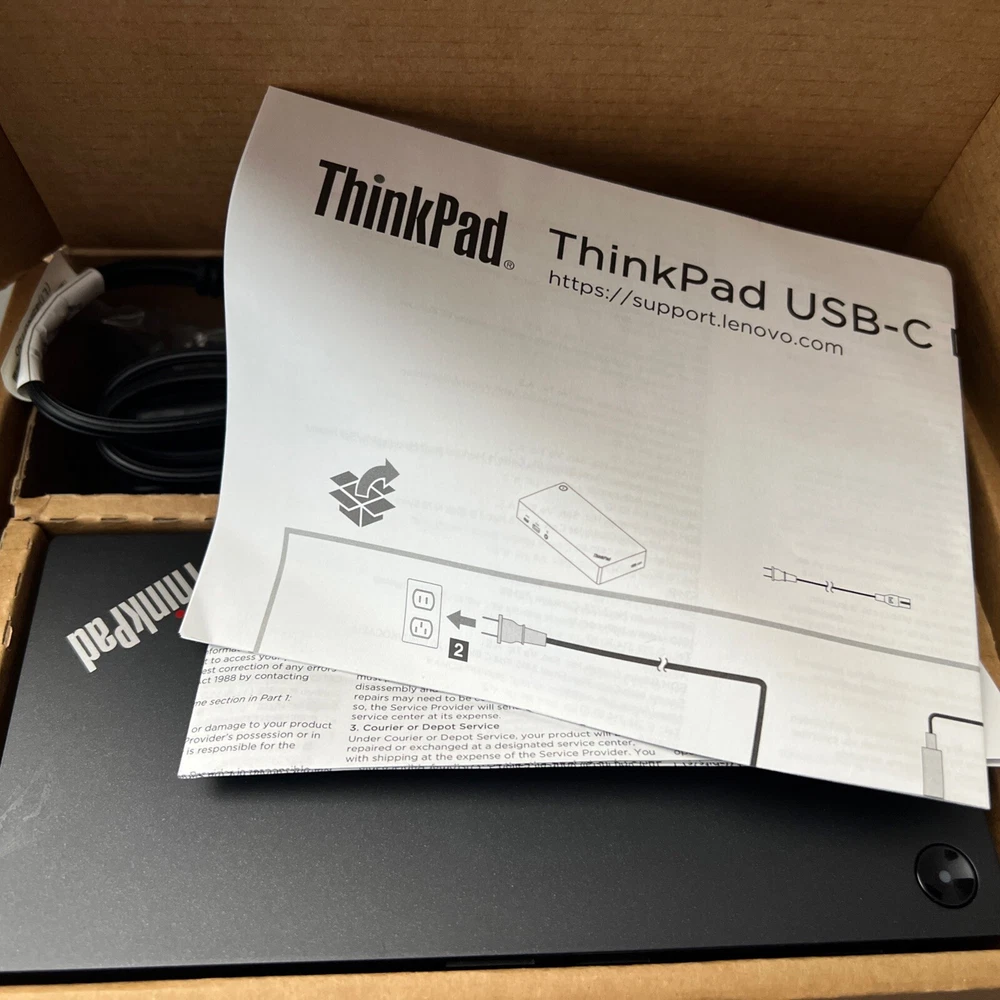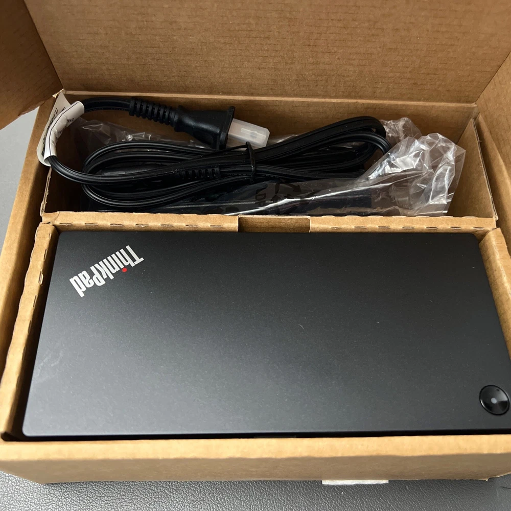 New open box in perfect new condition. Enhance your workspace with the Lenovo ThinkPad USB-C Dock Gen 2, the ultimate docking station designed to fit seamlessly with your Lenovo ThinkPad lineup, including models such as the ThinkPad X270, T495s, P53s, and more. Its sleek black design measures 8.3 inches in height, 2.95 inches in length, and 6.2 inches in width, making it a compact addition to your desk. The Dock provides a variety of connectivity options including DisplayPort, HDMI for high-resolution displays, Ethernet, and multiple USB ports—USB 2.0 and the latest USB-C—to expand your device's functionality. It also features a security lock slot to keep your devices safe. With part number 40AS0090US and UPC 192210275573, this docking station is a practical solution for Lenovo ThinkPad users seeking a versatile and secure docking experience.