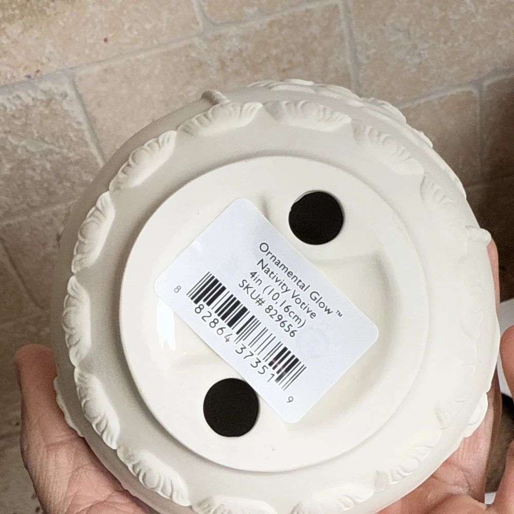 Add a touch of elegance to your Christmas decor with this beautiful Lenox Nativity Ornamental Glow Tealight Candle Holder. The design features a stunning round shape with stars pattern and depicts Jesus, Mary, and Joseph in a nativity scene. The raised relief and luminous features make this candle holder a perfect addition to any room in your home. Crafted from high-quality ceramic and porcelain, this limited edition and retired candle holder is suitable for mini candles and can be used as a decorative collectible or as a functional piece to add a warm and cozy atmosphere to your living space. This candle holder is a perfect gift for any occasion, and its beautiful design will last for years to come.