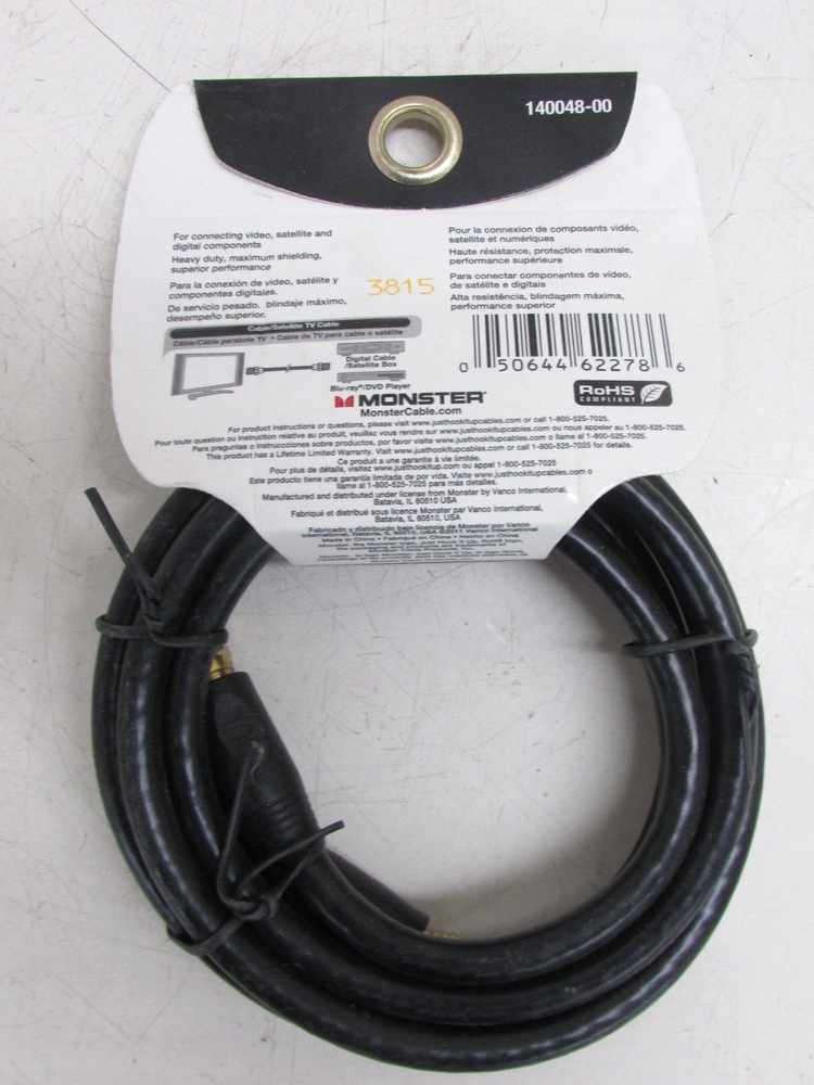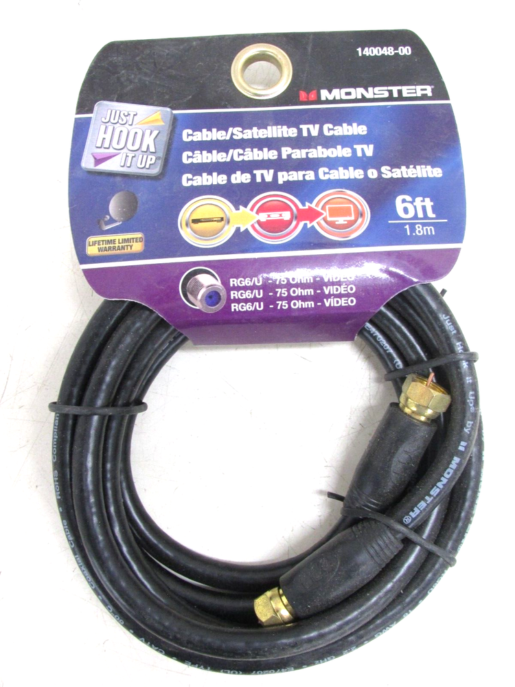 THIS IS A UNUSED ITEM BY MONSTER #140048-00 RG6/U TV / SATELLITE CABLE 6 ft. LONG, w ENDS NEW! 56AA