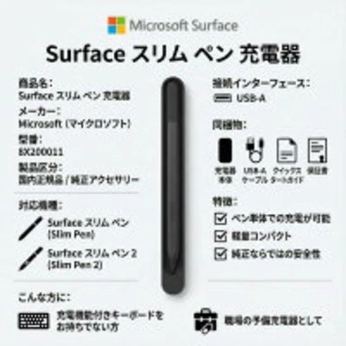 Description NEW Microsoft Surface Slim Pen 2 Charger Dock 8X2-00011 USB A Cable Black DDP Brand ‎Microsoft Manufacturer ‎Microsoft Package Dimensions ‎21.3 x 5.1 x 3.5 cm; 110 g Manufacturer Part Number ‎8X2-00011 Operating System ‎Windows 10 Professional Battery Included ‎No Item Weight ‎110 g All my products are 100% Authentic. Please feel free to contact us if you have any question. Shipping Shipping from Japan. We always send the item with a tracking number. So please place an order without any concern on delivery. You can always track the delivery status. Shipping is available from Monday to Friday. Weekends and Japanese holidays are not available because post office is closed. Shipping is only available to the address registered in eBay. If you want us to send another address, please change your address on eBay and then place an order. If your address is in the remote areas defined by the freight (shipping) company, please pay the additional shipping fees with PayPal. Payment Shipping from Japan. We always send the item with a tracking number. So please place an order without any concern on delivery. You can always track the delivery status. You can use credit and debit cards,Apple Pay,Google Pay,and Paypal. Payment is due within 6 business day of your purchase. We will ship the item within 6 business day after receiving cleared payment. Some items may have different individual shipping dates. Please check our Business and ShippingPolicy for details. We will ship to the address registered on ebay. Return Shipping from Japan. We always send the item with a tracking number. So please place an order without any concern on delivery. You We offer a standard Free 60 days refund or exchange policy. Item must be returned condition in order to receive a full refound International Buyers - Please Note: Import duties, taxes, and charges are not included in the item price or shipping cost. These charges are the buyer's responsibility. Please check with your country's customs office to determine what these additional costs will be prior to bidding or buying. Import duties, taxes, and charges are not included in the item price or shipping cost. These charges are the buyer's responsibility. Please check with your country's customs office to determine what these additional costs will be prior to bidding or buying. Thank you for your understanding.