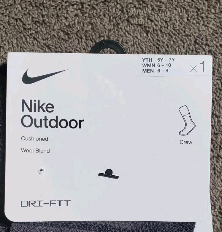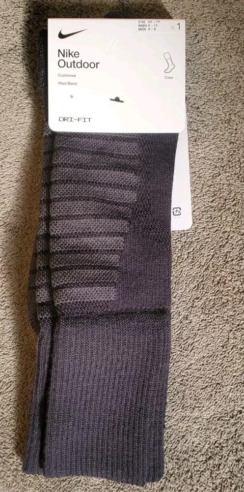 Elevate your outdoor adventures with these Nike crew socks. Made from a blend of polyester and wool, these mid-calf socks are perfect for all seasons and activities, including gym and training, walking, golf, hunting, and crossfit. The full toe style and striped pattern add a touch of style to your outfit, while the moisture-wicking and breathable features ensure your feet stay comfortable and dry. These socks are available in black for men and grey/black for women, with a size range of 6-8 for men and 6-10 for women. They are perfect for casual wear, workwear, and business attire, and are not handmade. Get ready to experience the ultimate comfort and performance with these Nike outdoor socks. Pictures are of actual socks. Brand new never worn and no defects. Feel free to contact me with any questions .